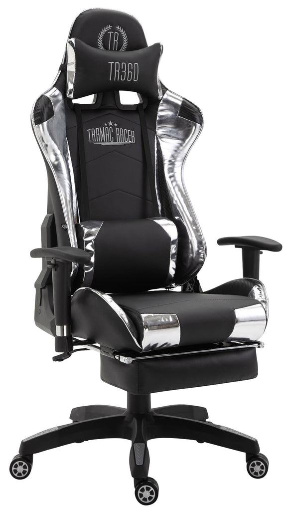 Fauteuil de bureau chaise gamer sur roulettes avec repose-pieds accoudoirs en PVC noir / blanc 10_0002765