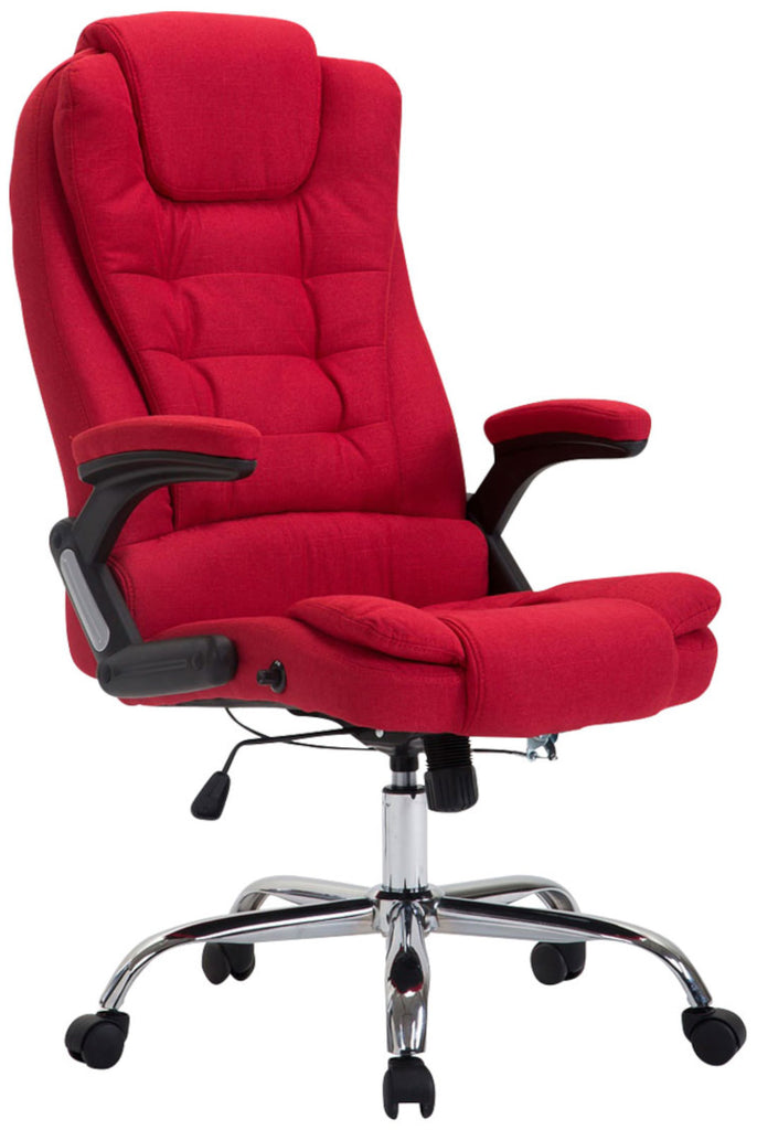 Fauteuil de bureau XXL sur roulettes confortablement rembourrés avec accoudoirs en tissu rouge et métal chromé 10_0002666