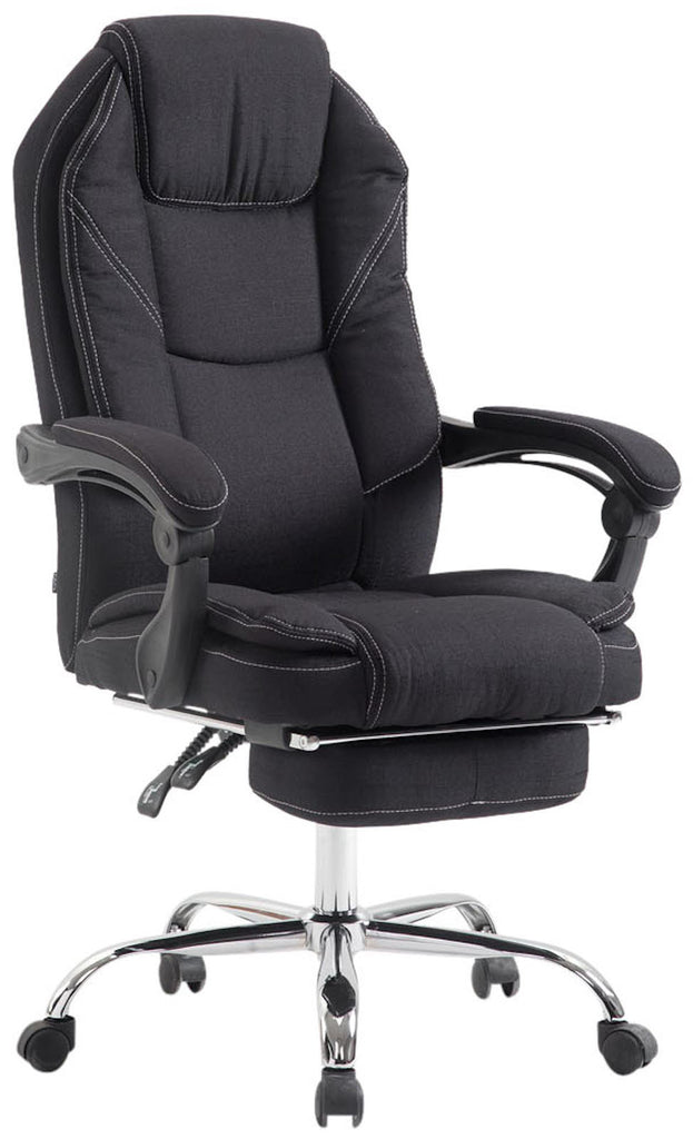 Fauteuil de bureau sur roulettes dossier et repose-pied réglable en tissu noir et métal 10_0002442