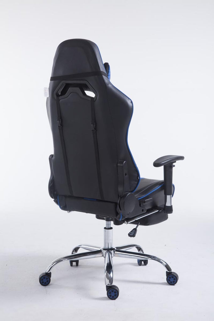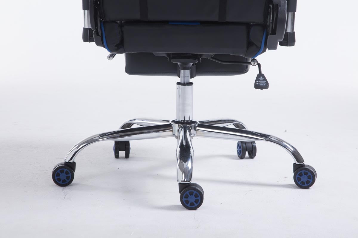 Fauteuil de bureau accoudoirs pivotants avec repose-pieds similicuir noir / bleu cadre métal 10_0006915
