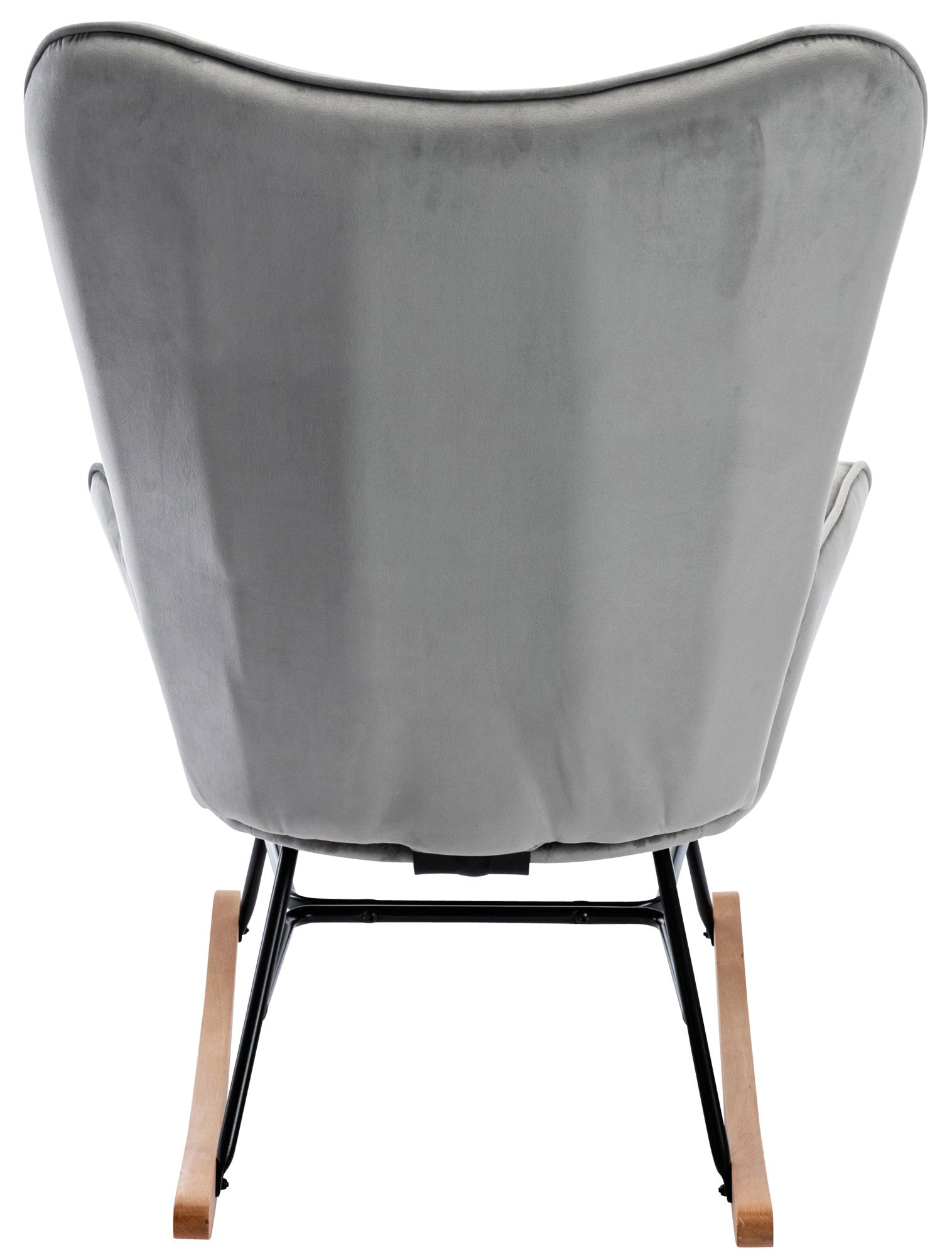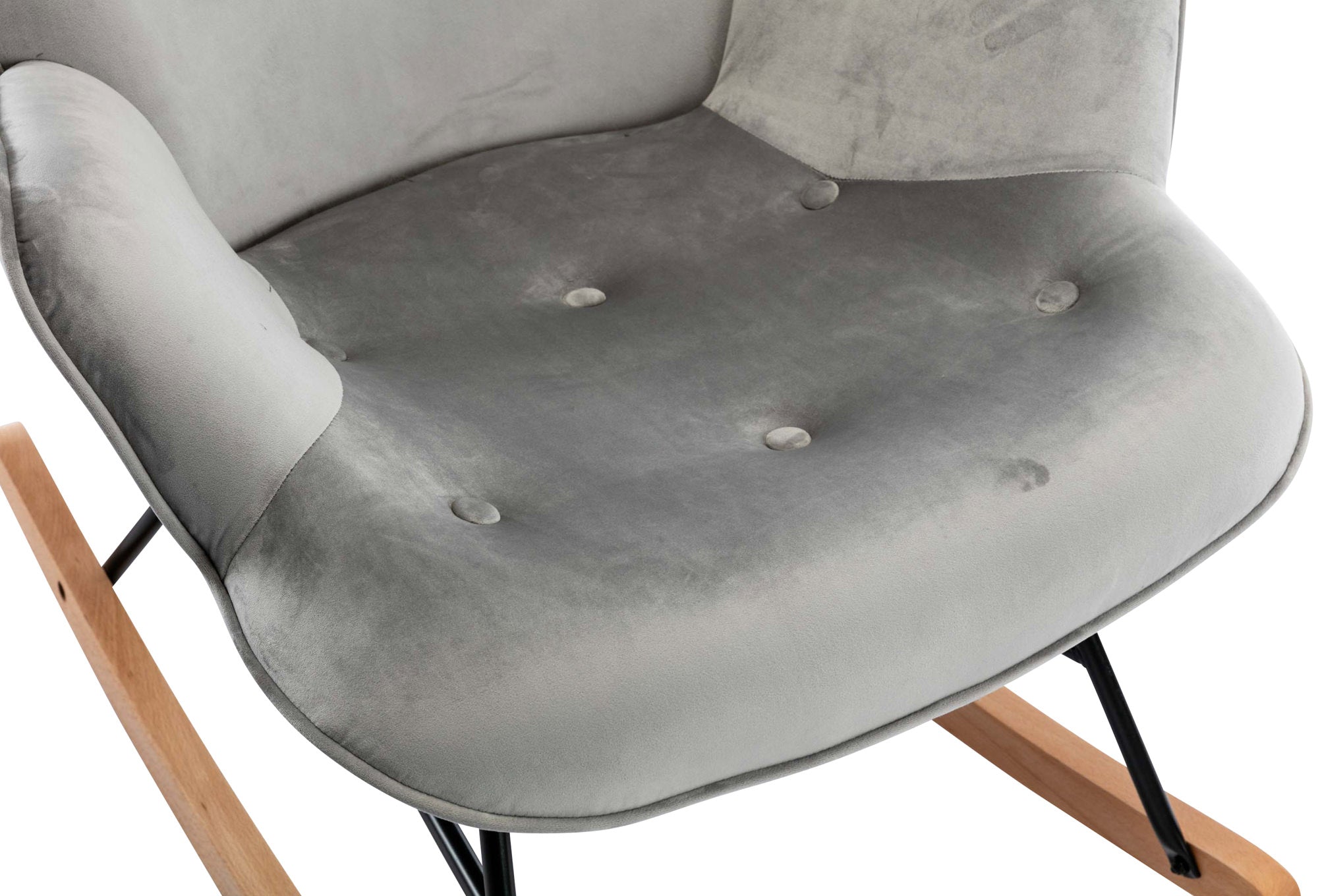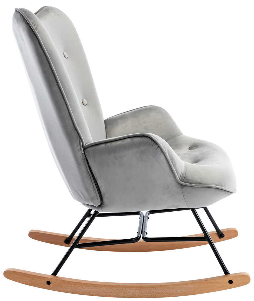 Fauteuil à bascule rocking chair bouton décoratif en tissu velours gris clair confortable et design FAB10072