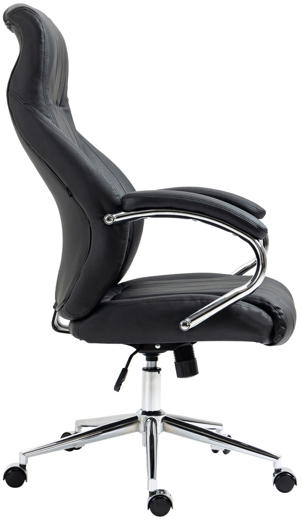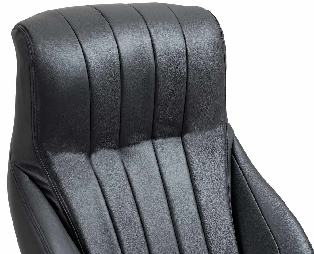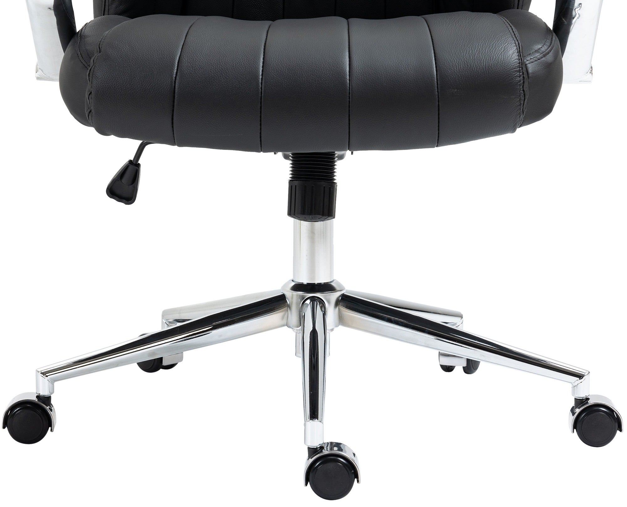 Fauteuil de bureau forme ergonomique pivotant à 360° en véritable cuir noir et métal chromé 10_0002715