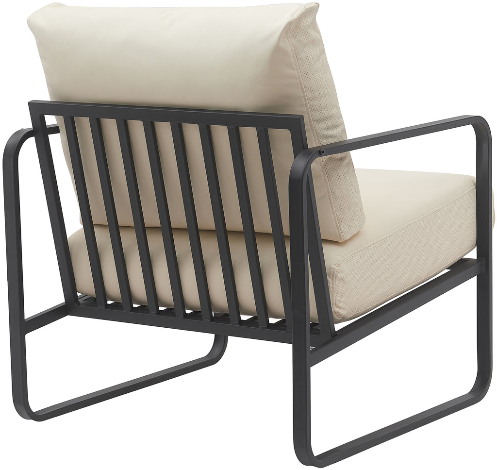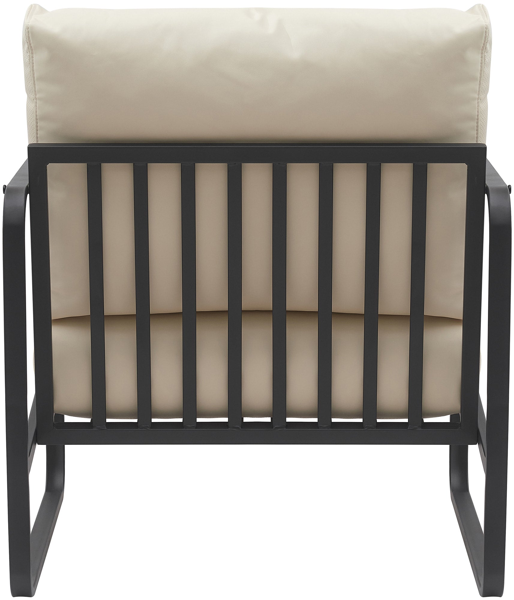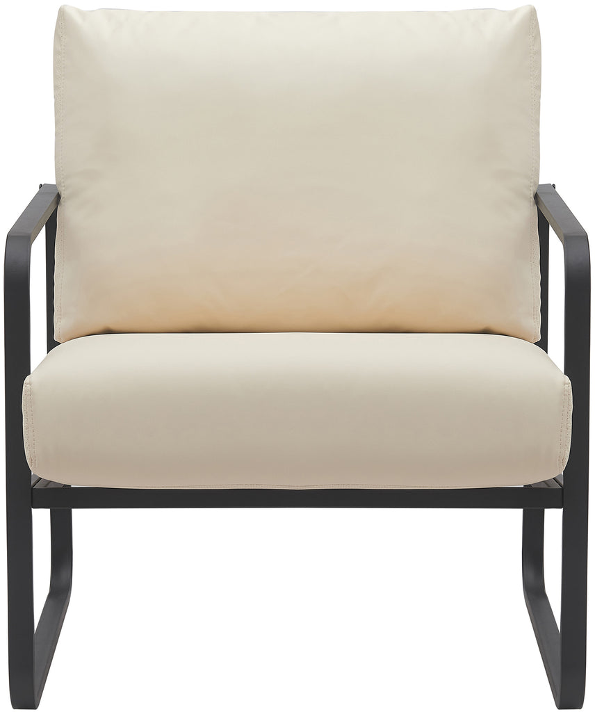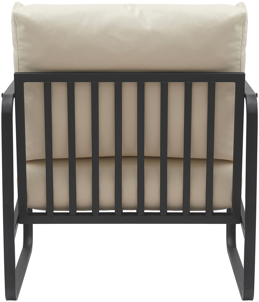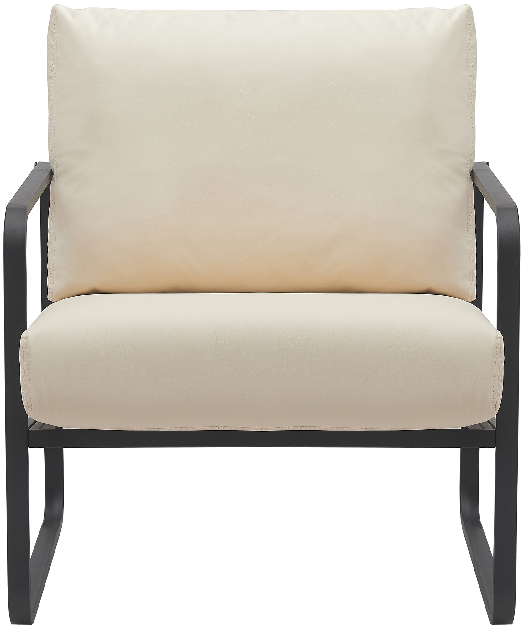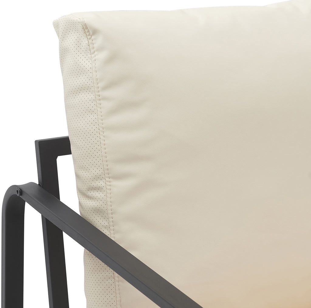 Fauteuil lounge design retro chic en PVC crème et cadre en métal noir mat 10_0002813