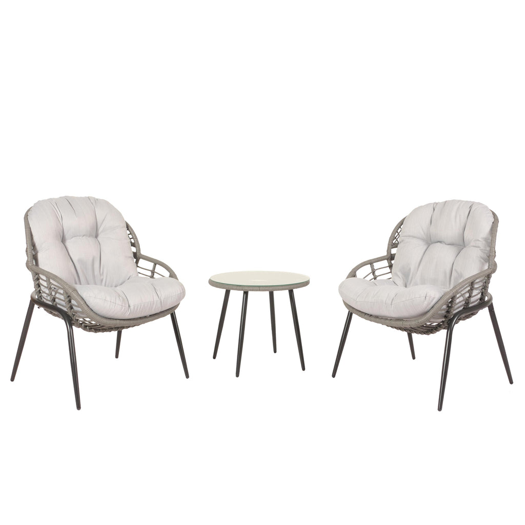 Ensemble de fauteuils et table d'appoint pour jardin en polyrotin et coussin gris clair 04_0006696