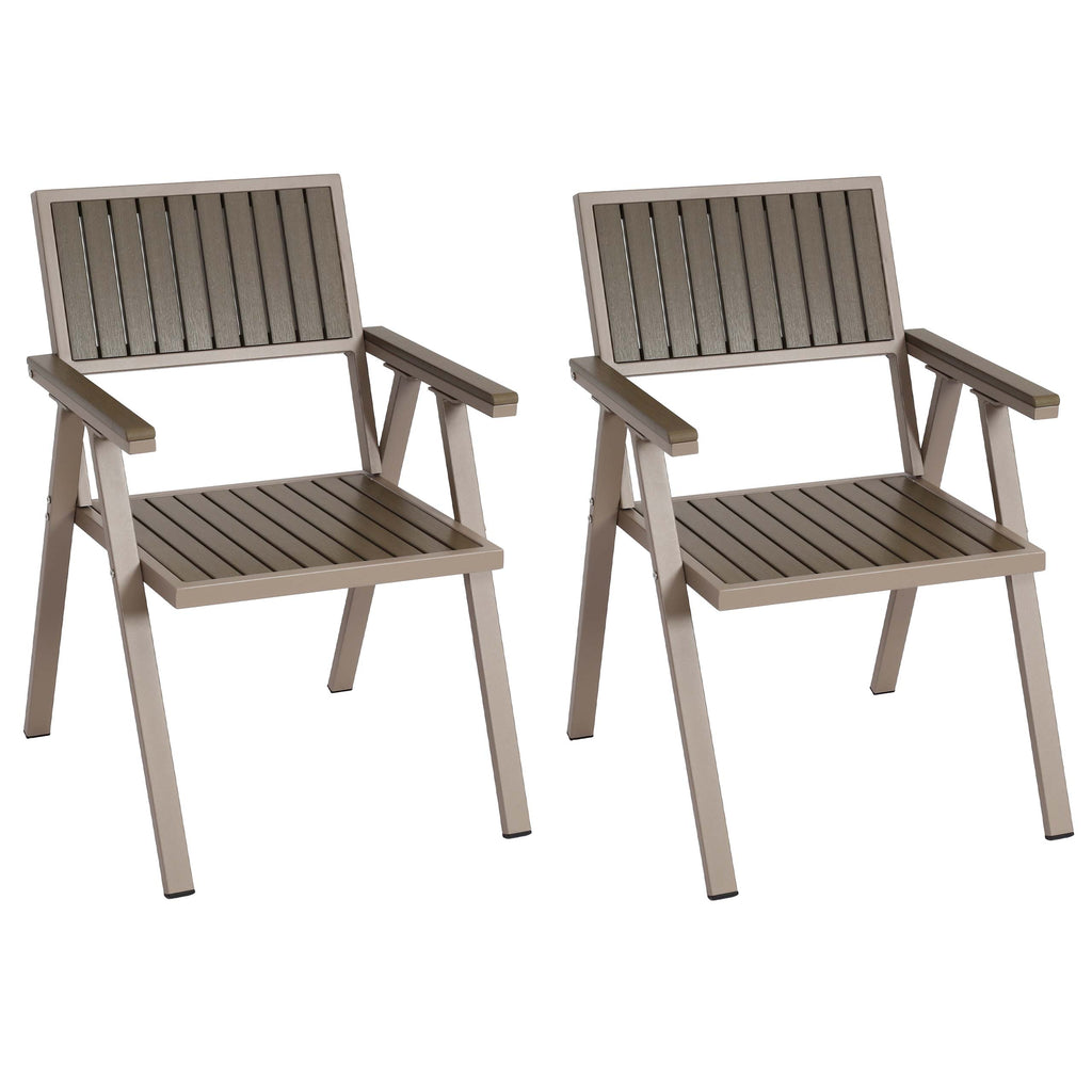 Lot de 2 chaises de jardin extérieur en aluminium aspect bois structure gris champagne 04_0007302