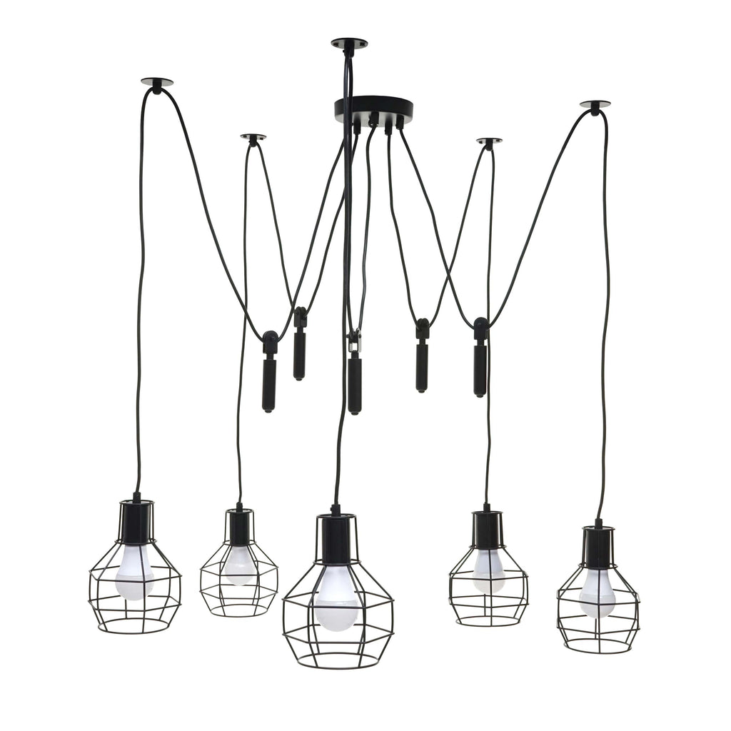 Lustre lampe suspendue design industriel réglable en hauteur noir 5x abat-jour 04_0003597