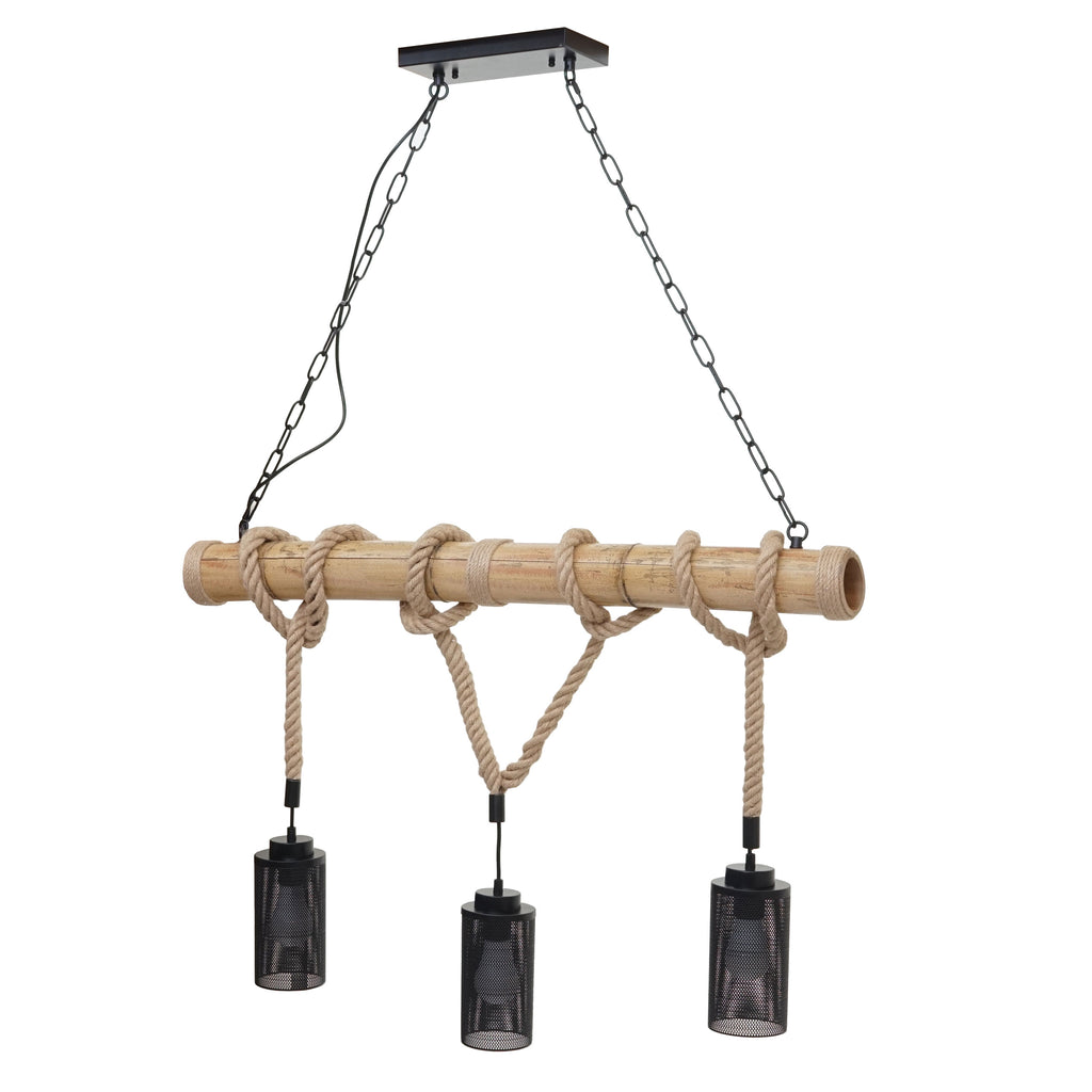 Lampe à suspension corde de bambou design vintage industrielle métal noir abat-jour tube 3x 04_0003599