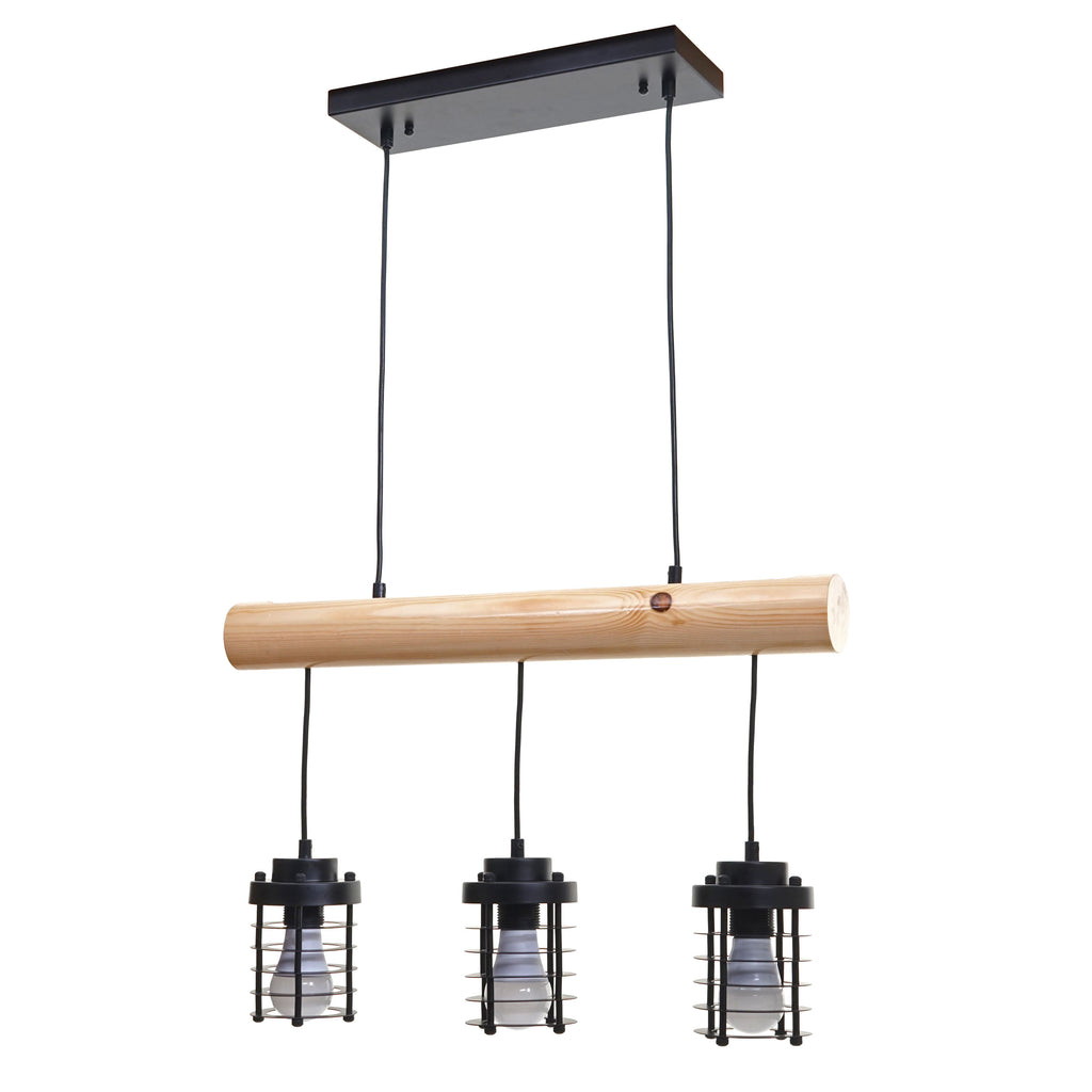 Lampe suspension lustre style industriel vintage bois massif métal noir 3 abat-jour en treillis 04_0003603