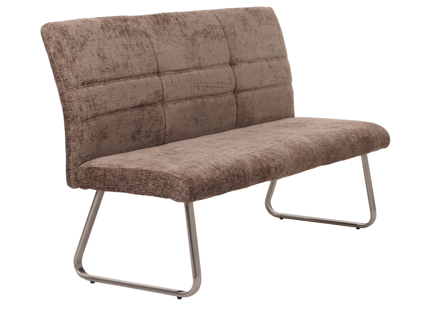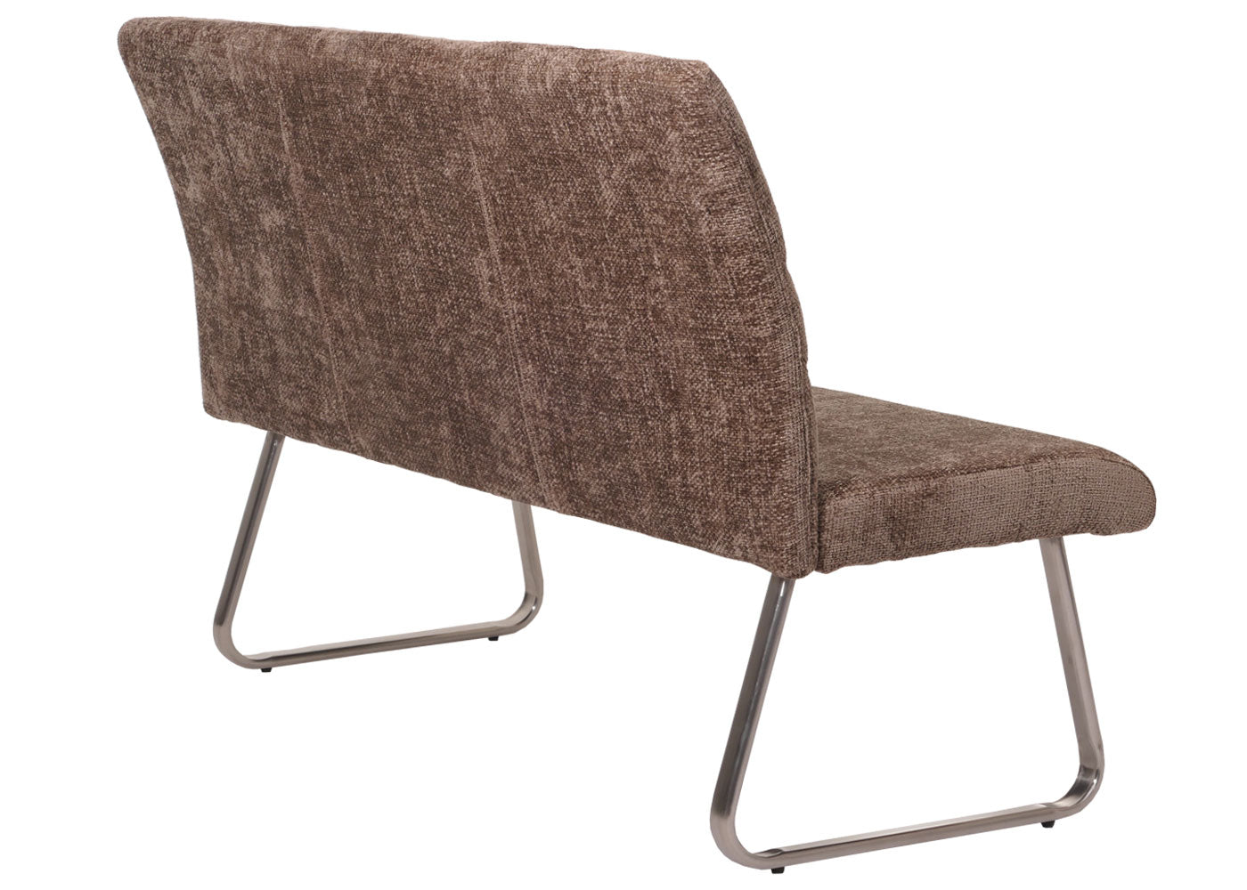 Les coutures décoratives sur le dossier donnent à ce meuble ce petit quelque chose en plus. Le tout est complété par les pieds en acier inoxydable qui assurent une position stable et font de ce banc de canapé un véritable accroche-regard.