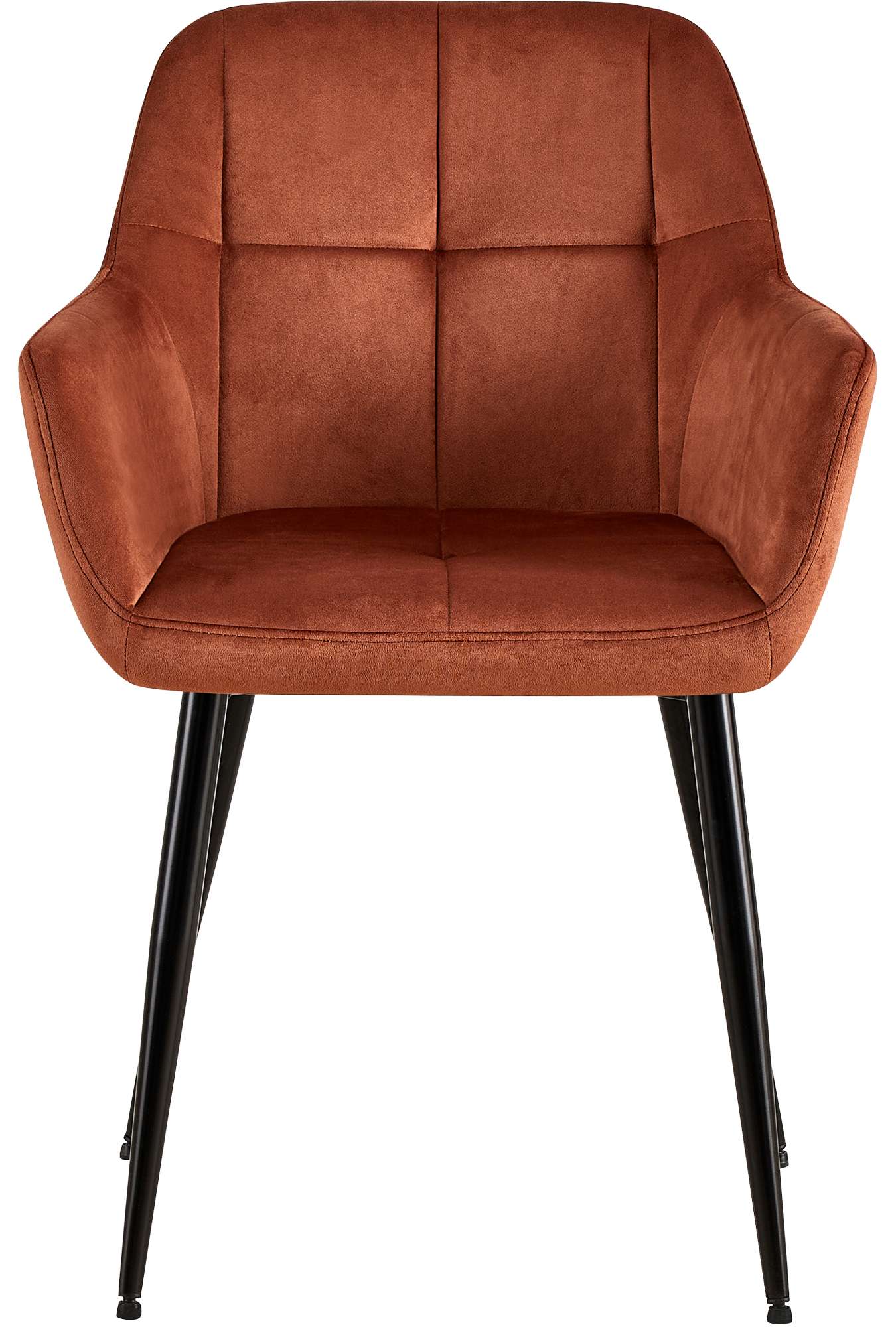 Chaise de salle à manger bureau coutures décoratives carrées en velours marron pieds en métal noir 10_0001900