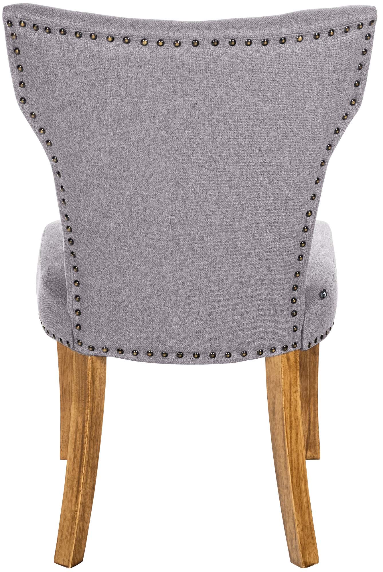 Chaise de salle à manger x1 boutons décoratifs en tissu gris et pieds en bois marron clair 10_0002174