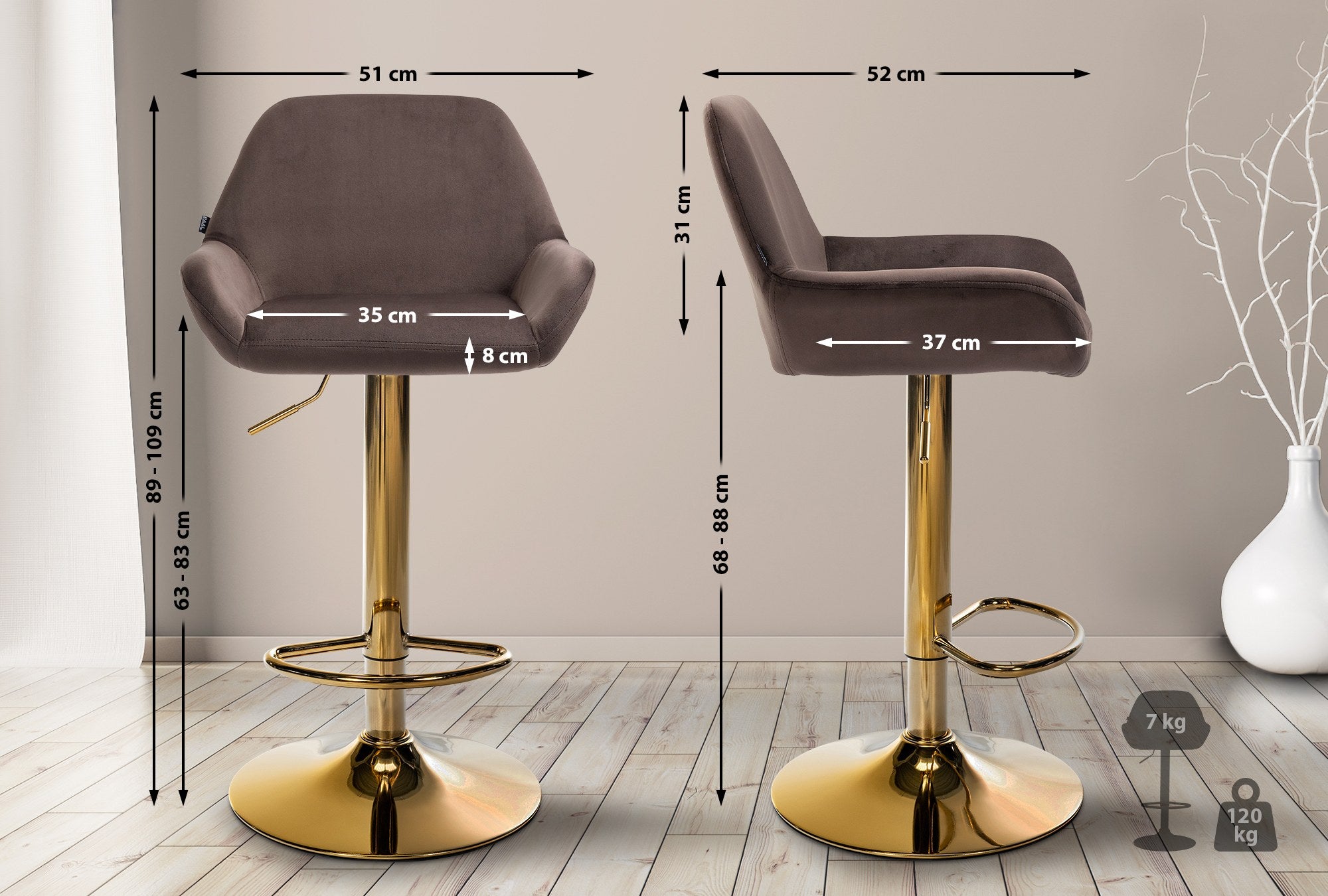 Lot de 2 tabourets de bar repose-pieds intégré revêtement velours marron structure en métal doré TDB10736