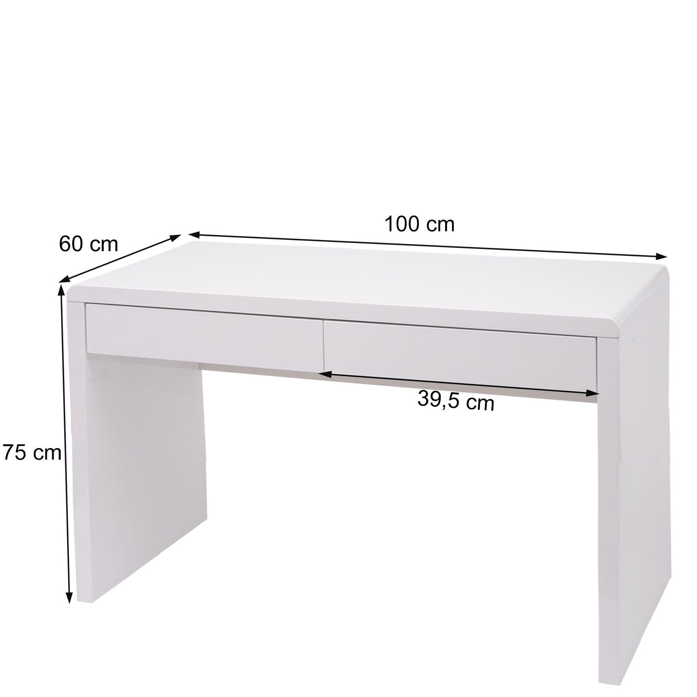 Bureau table d'ordinateur avec 2 tiroirs MDF blanc brillant 100x60 cm 04_0006052