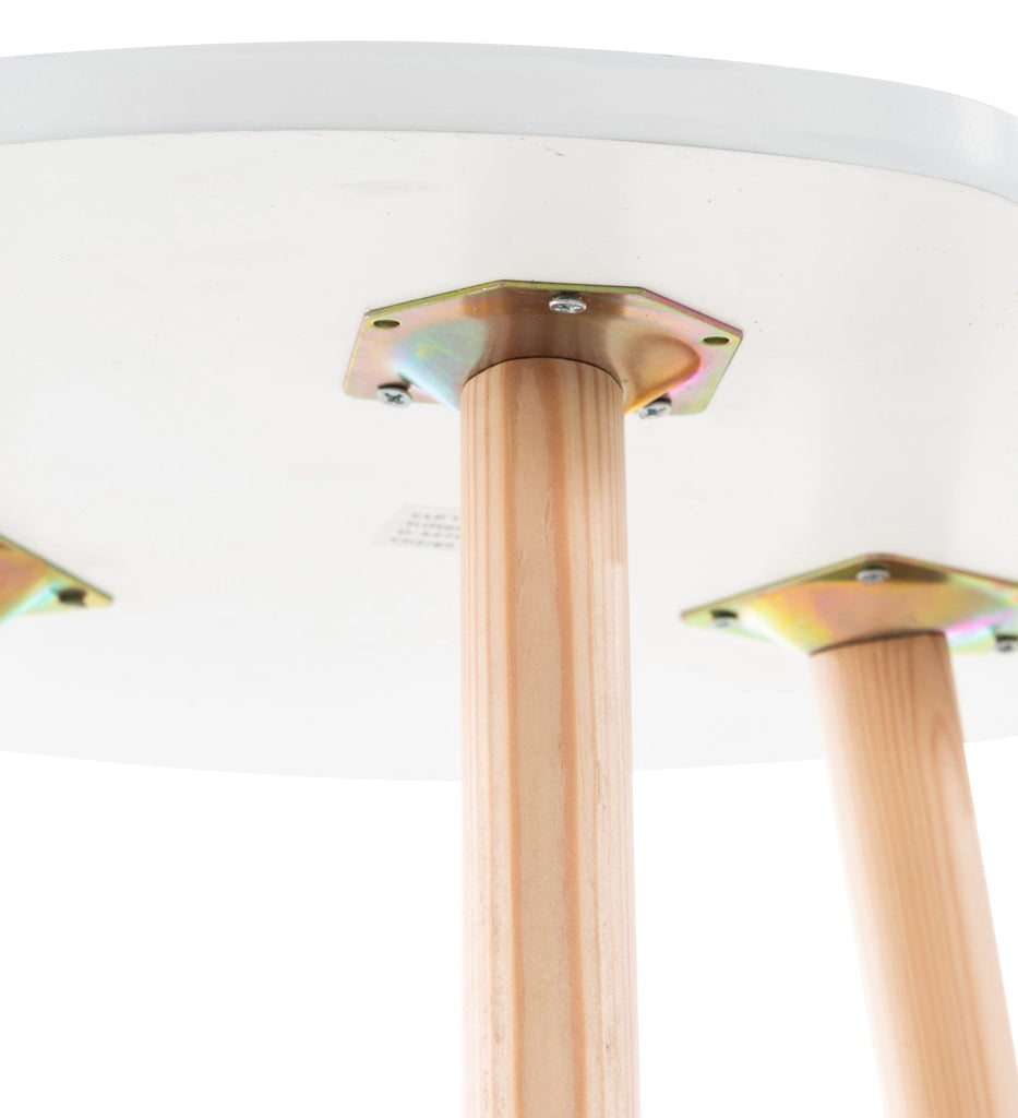 La table repose sur un piètement en bois de hêtre composé de 3 pieds solides et stables. Qu'elle soit utilisée comme table pour le sofa, dans le couloir ou comme table de chevet, notre table d'appoint reste multifonction et saura s'adapter à vos besoins.