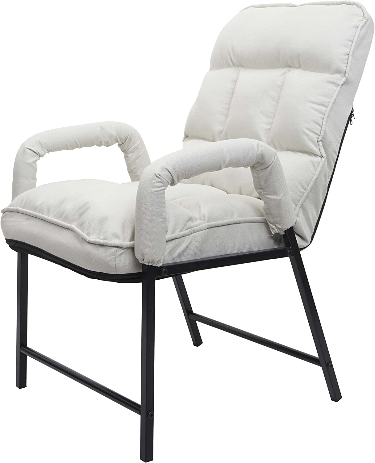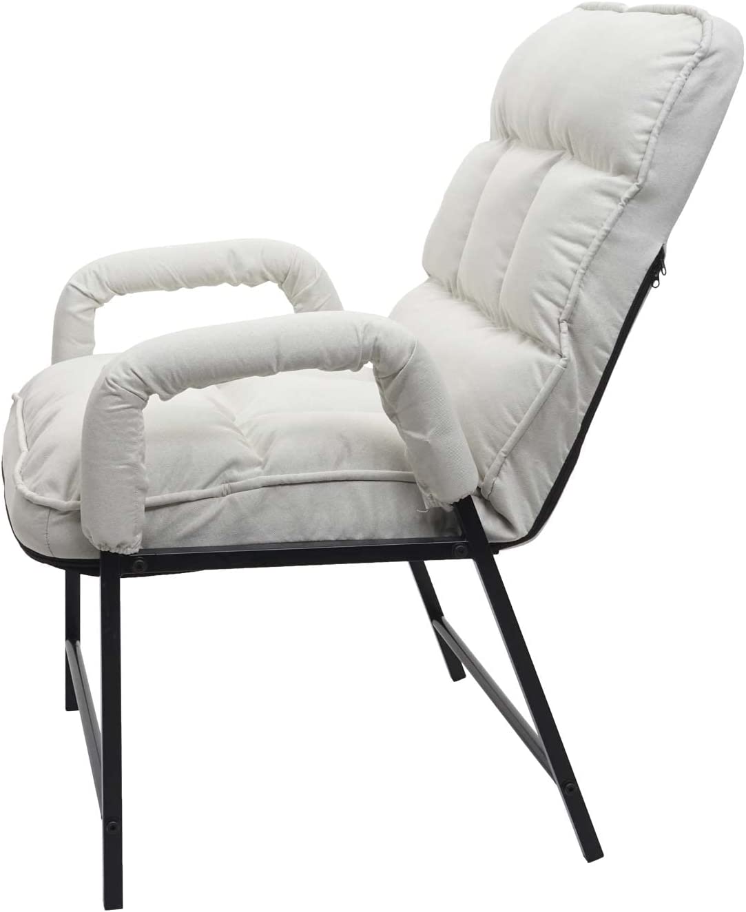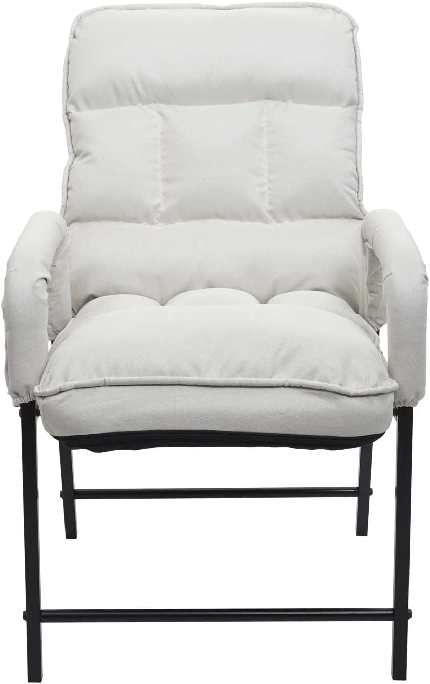Chaise fauteuil lounge rembourrée dossier inclinable 160 kg métal réglable en tissu/textile crème