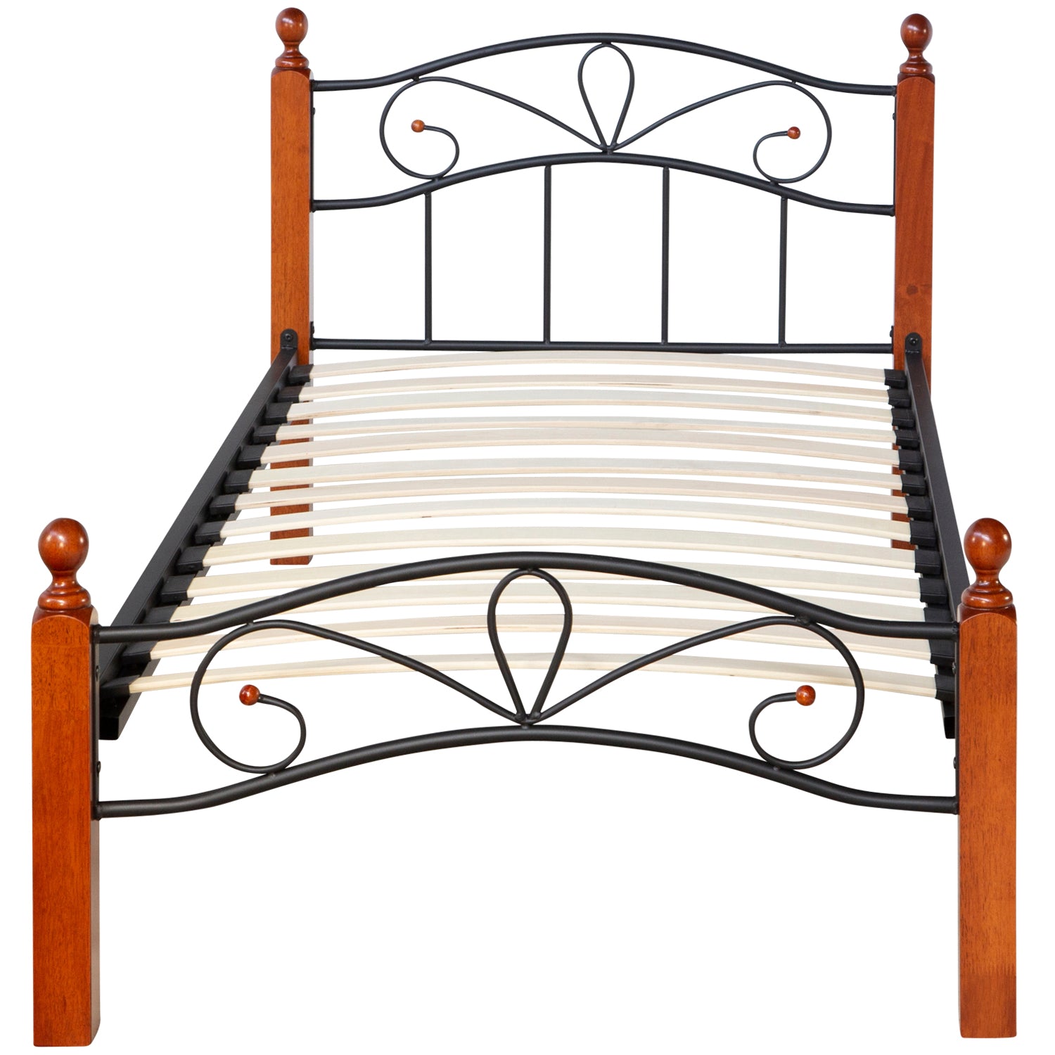 Lit 1 personne en métal et bois marron foncé 90x200 cm avec sommier à lattes LIT06195