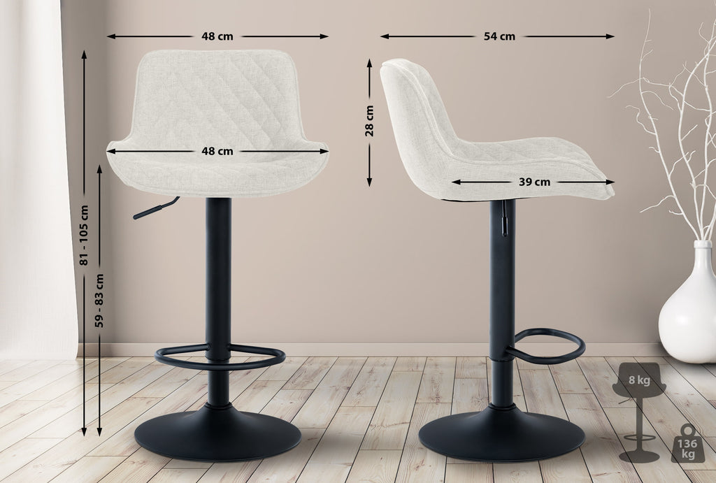 Lot de 2 tabourets de bar réglable et pivotant assise en tissu crème pieds métal noir TDB10612