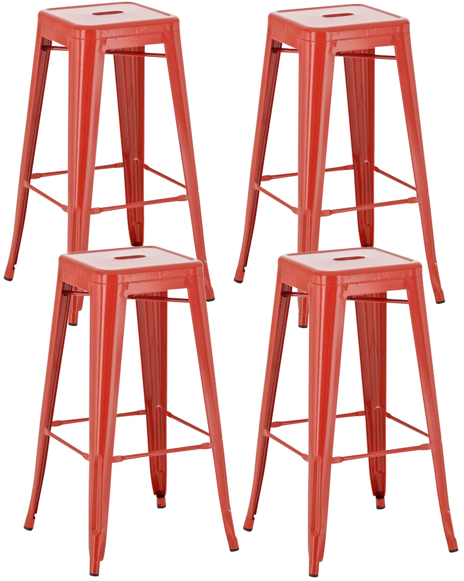 Lot de 4 tabourets de bar style industriel avec repose-pieds en métal rouge TDB10288