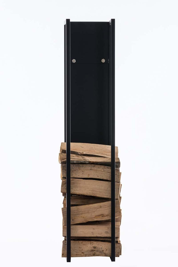 Range-bûches étagère en métal noir bois de cheminée 25x25x80 cm DEC10013