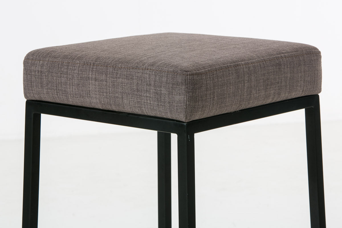 Tabouret de bar avec repose-pieds design moderne tissu gris et métal noir mat 10_0001078