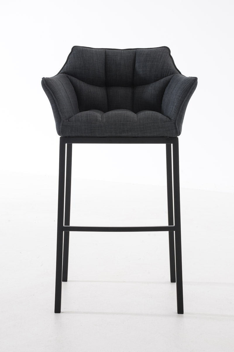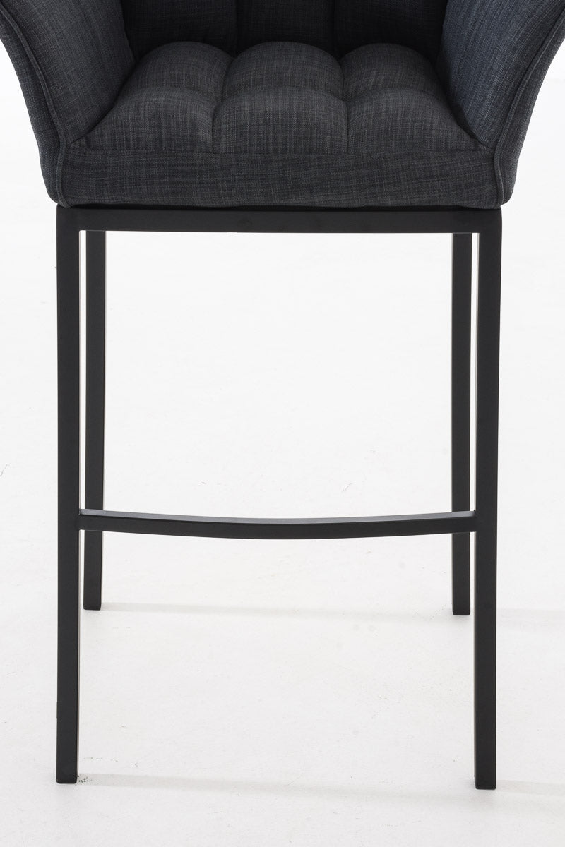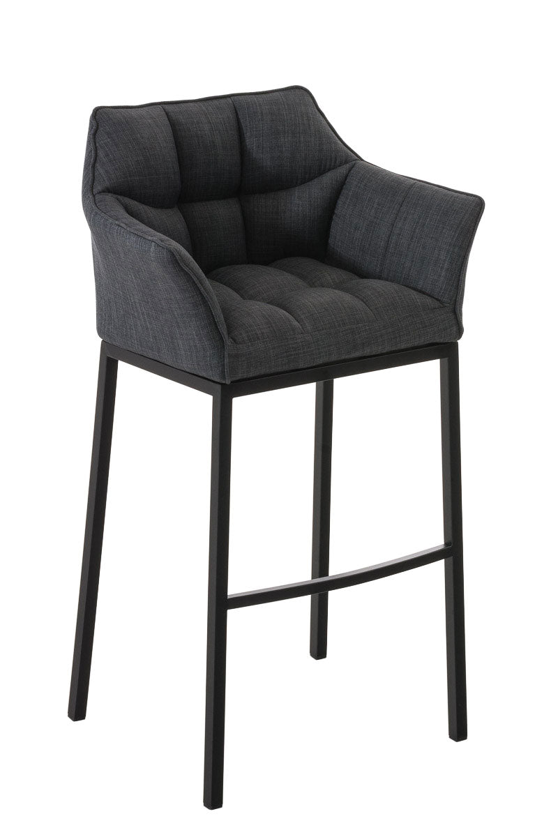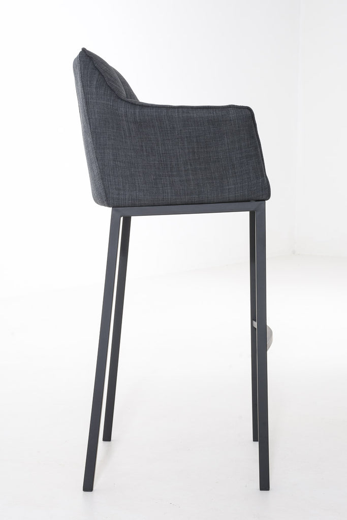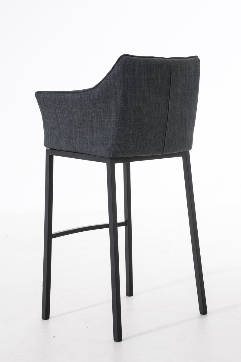Tabouret de bar avec repose-pieds et dossier en tissu gris foncé et pieds métal noir 10_0001174