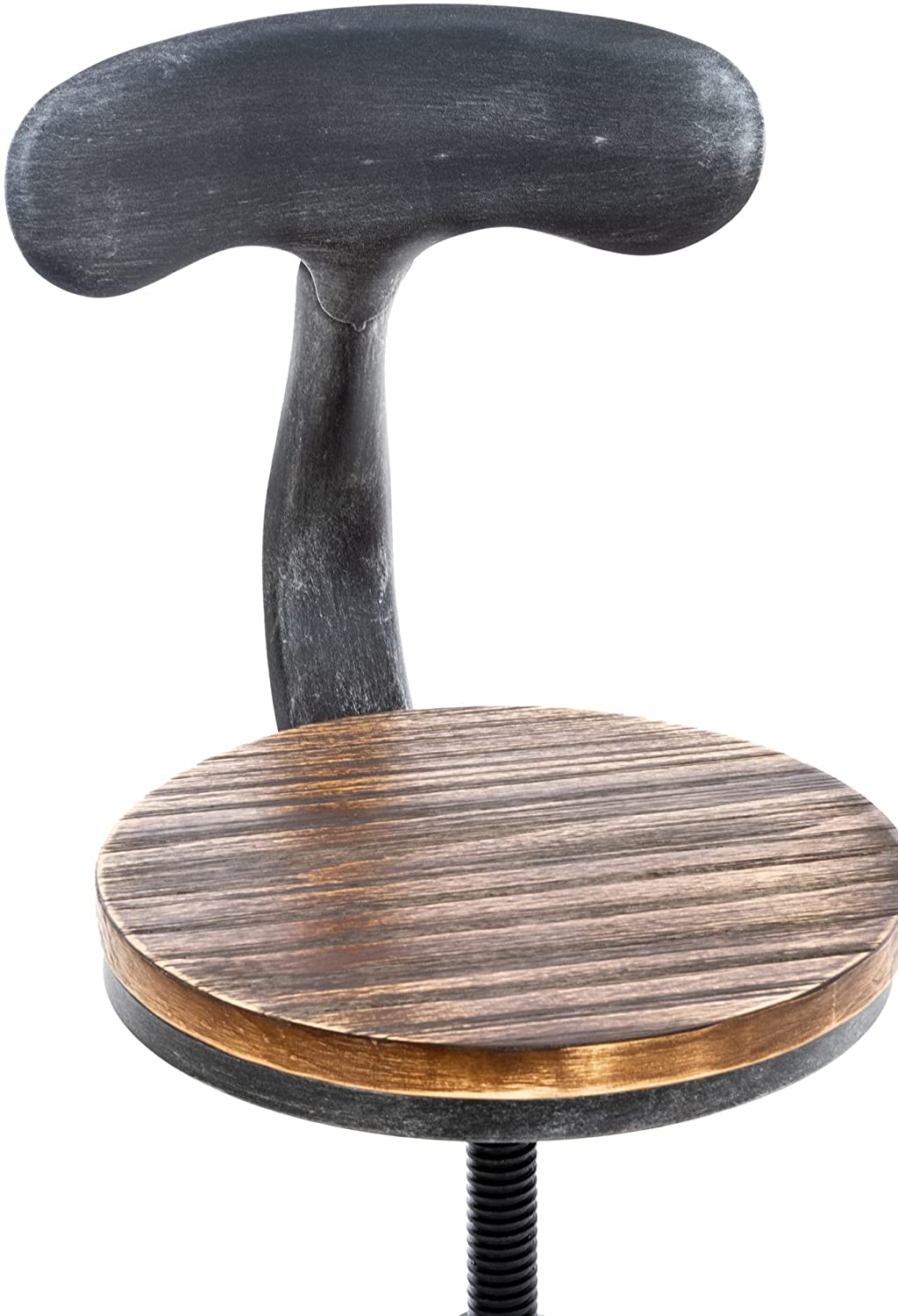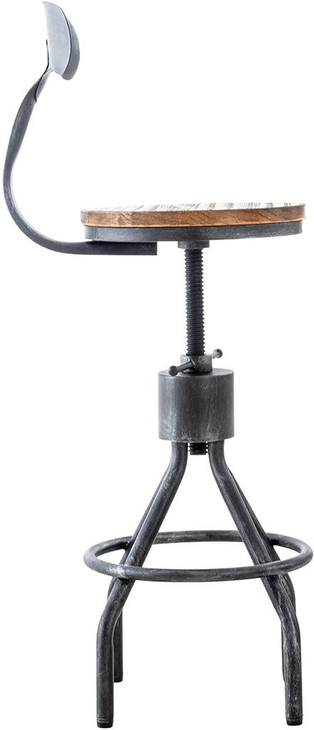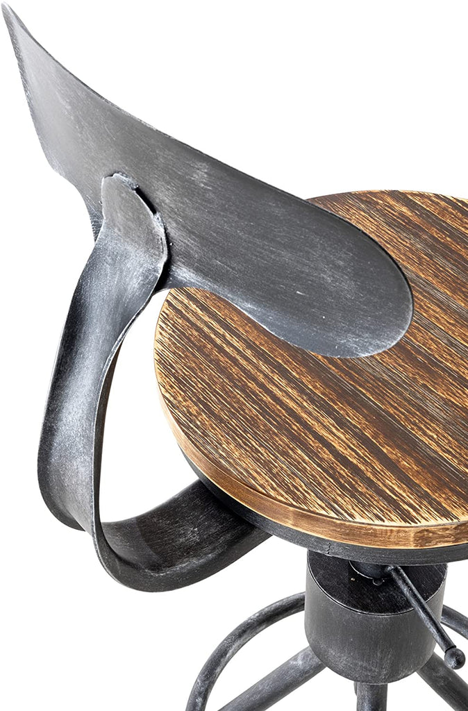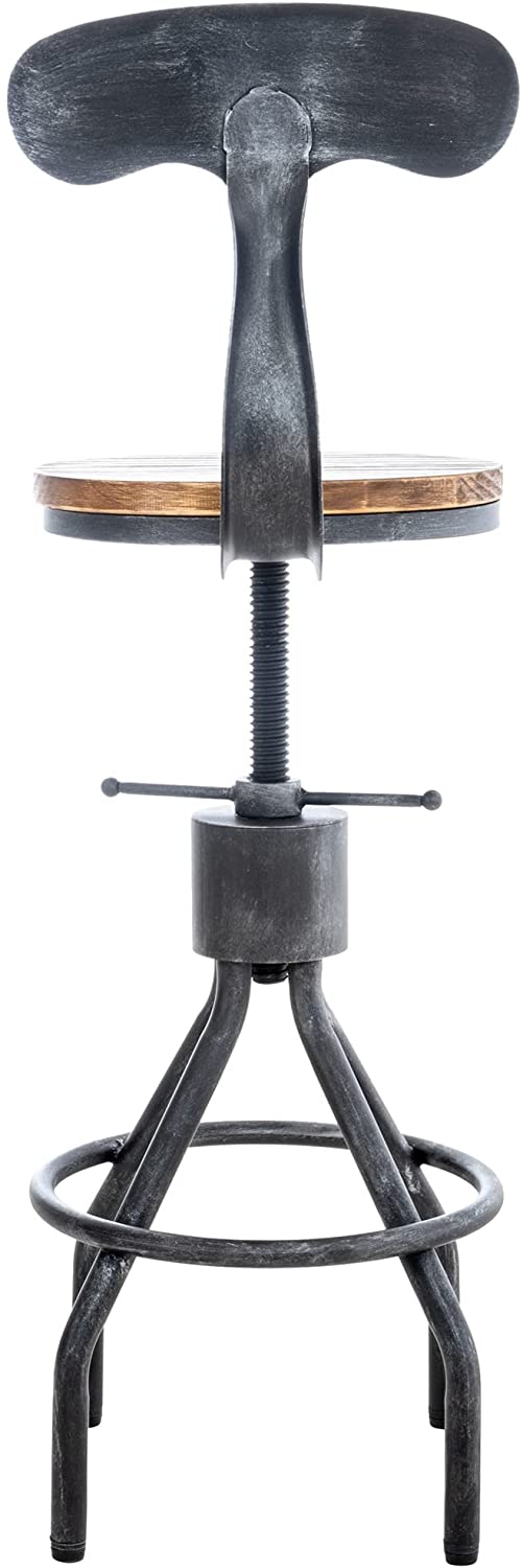 Le tabouret de bar a été conçu dans un style rétro industriel. Le mélange de matériaux, le bois et le métal, en l'occurrence, confèrent une originalité certaine à ce modèle. L'assise est conçu dans du bois de pin de haute qualité facile à entretenir. Le cadre, le dossier inclus est, quant à lui, fabriqué dans du métal solide et stable. La chaise haute est réglable en hauteur, grâce à une manivelle installée sous le siège. Cela permettra à l'utilisateur de régler le tabouret à sa hauteur. Le support est muni d'un repose-pieds circulaire, facilitant le mouvement. Le siège est, bien entendu, pivotant à 360°.