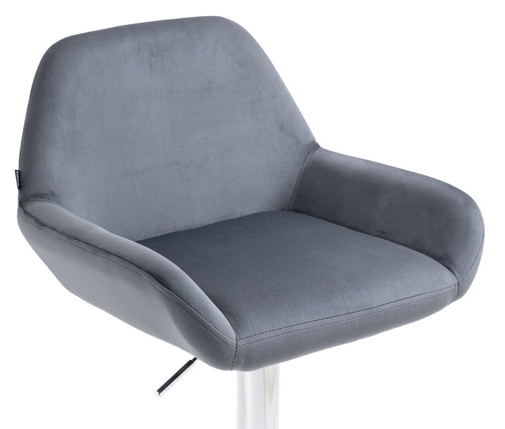 Tabouret de bar x1 en velours rembourré gris foncé base trompette métal chromée TDB10425