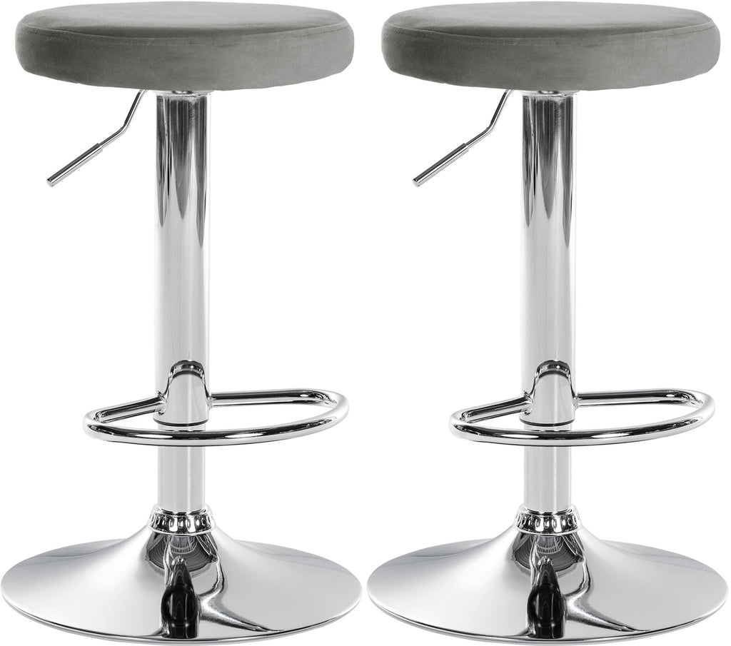 Lot de 2 tabourets de bar avec assise en tissu velours gris et cadre métal chromé TDB10715