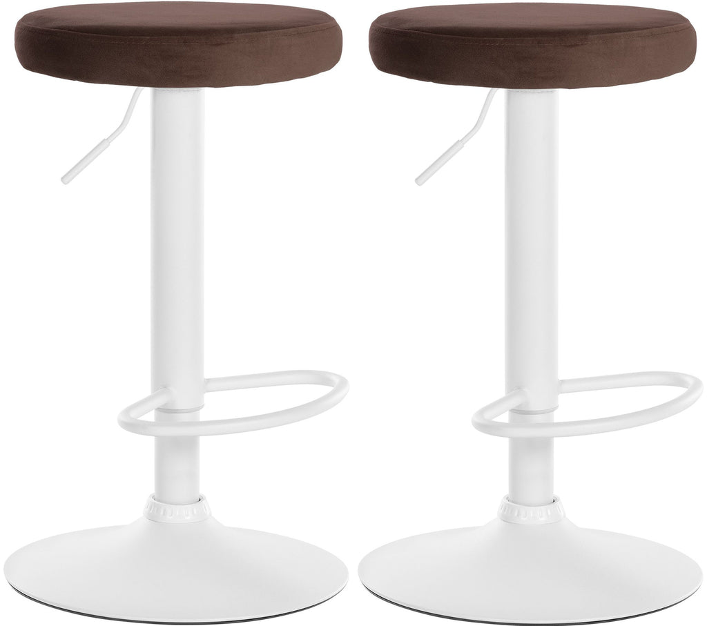 Lot de 2 tabourets de bar avec assise en tissu velours marron et cadre métal blanc TDB10697
