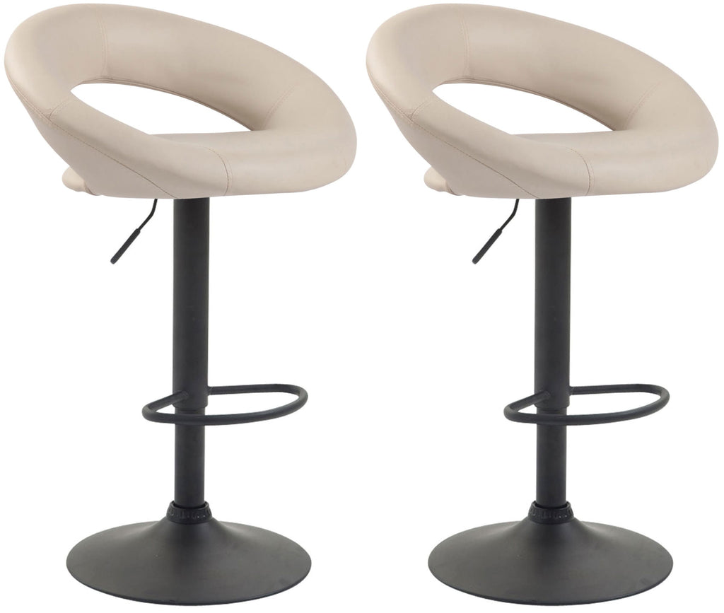 Lot de 2 tabourets de bar en synthétique crème design moderne base métal noir mat TDB10544