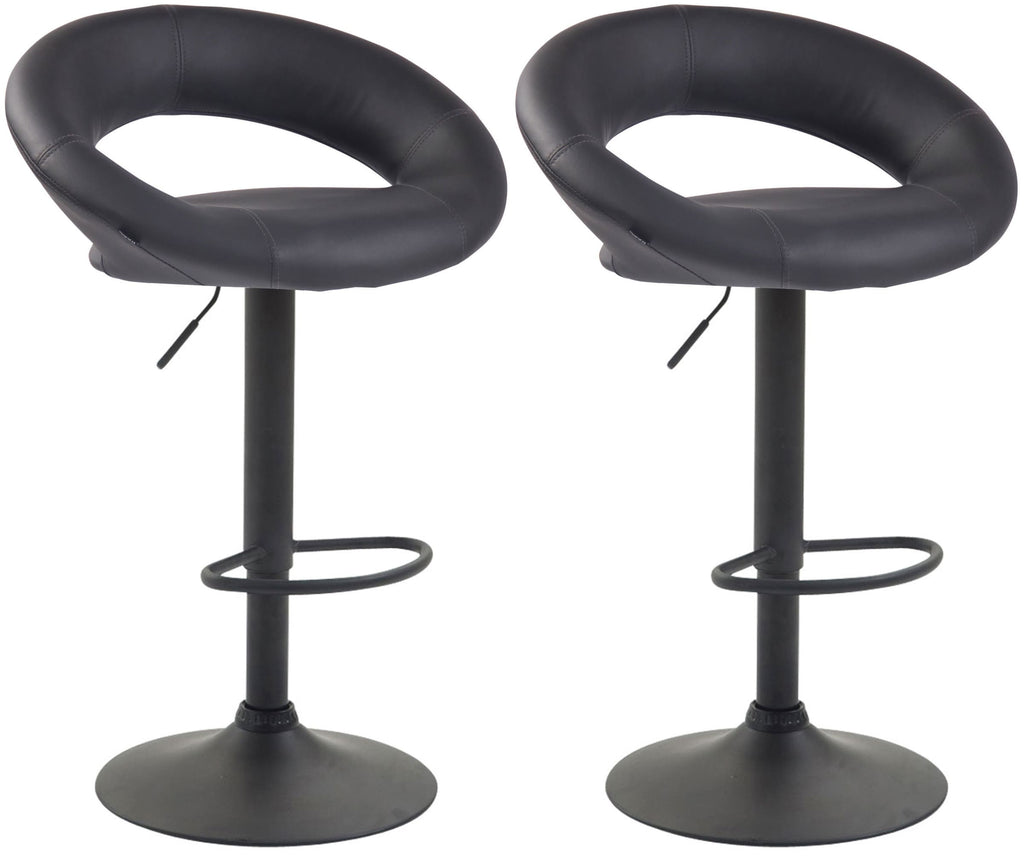Lot de 2 tabourets de bar en synthétique noir design moderne base métal noir mat TDB10546
