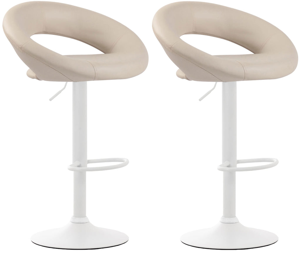 Lot de 2 tabourets de bar en synthétique crème design moderne base métal blanc mat TDB10553