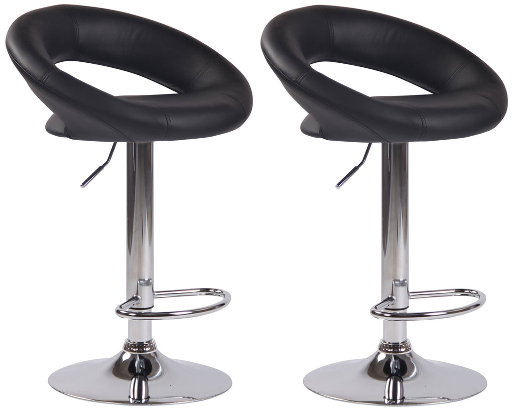 Lot de 2 tabourets de bar en synthétique noir design moderne base métal aspect chromé TDB10558