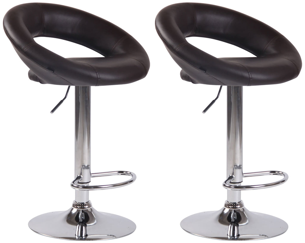 Lot de 2 tabourets de bar en synthétique marron design moderne base métal aspect chromé TDB10563