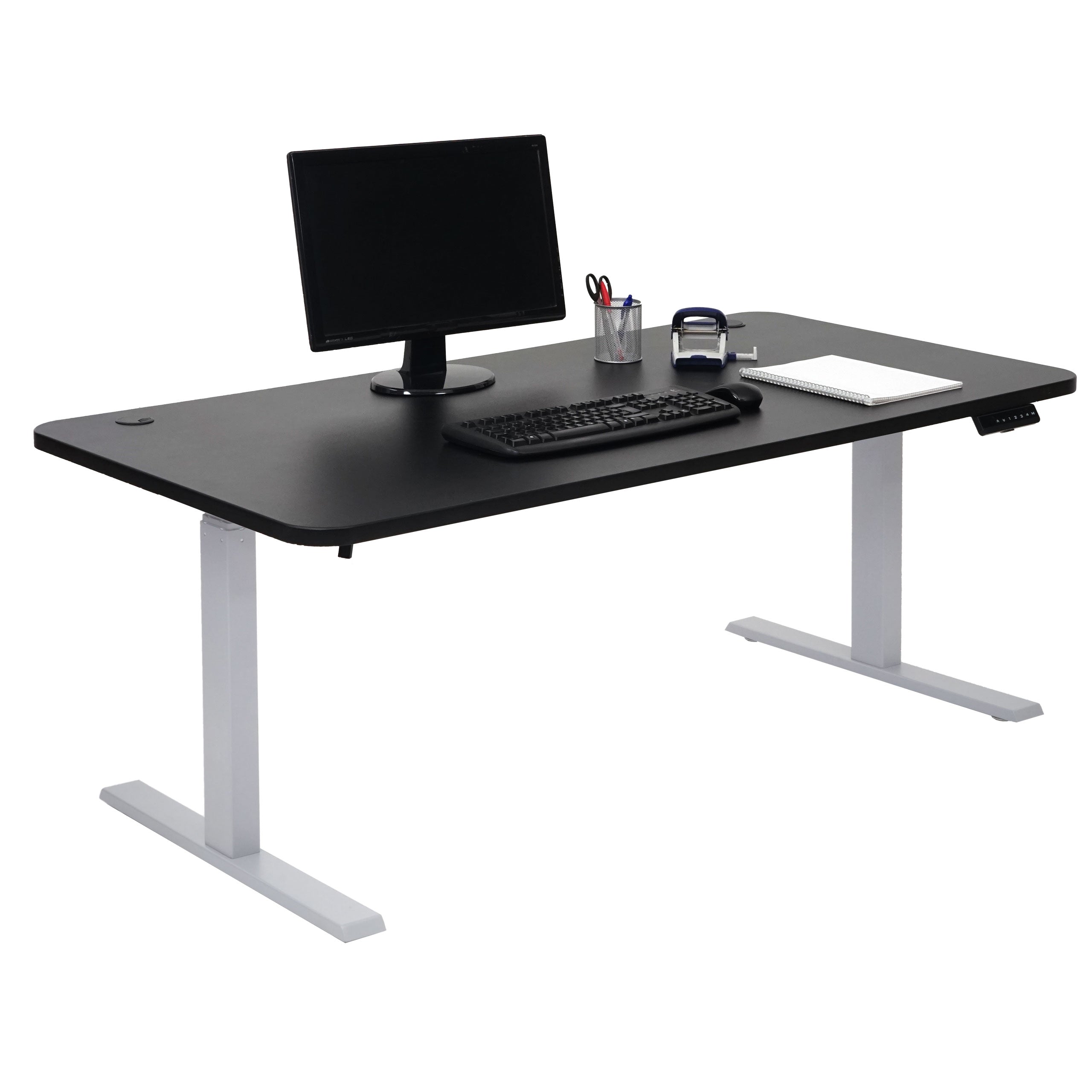 Bureau table d'ordinateur réglable en hauteur électriquement 160x80cm 53kg MDF Noir, Gris 04_0001406