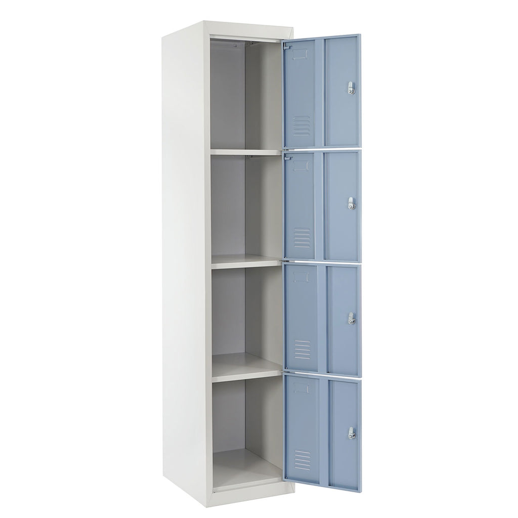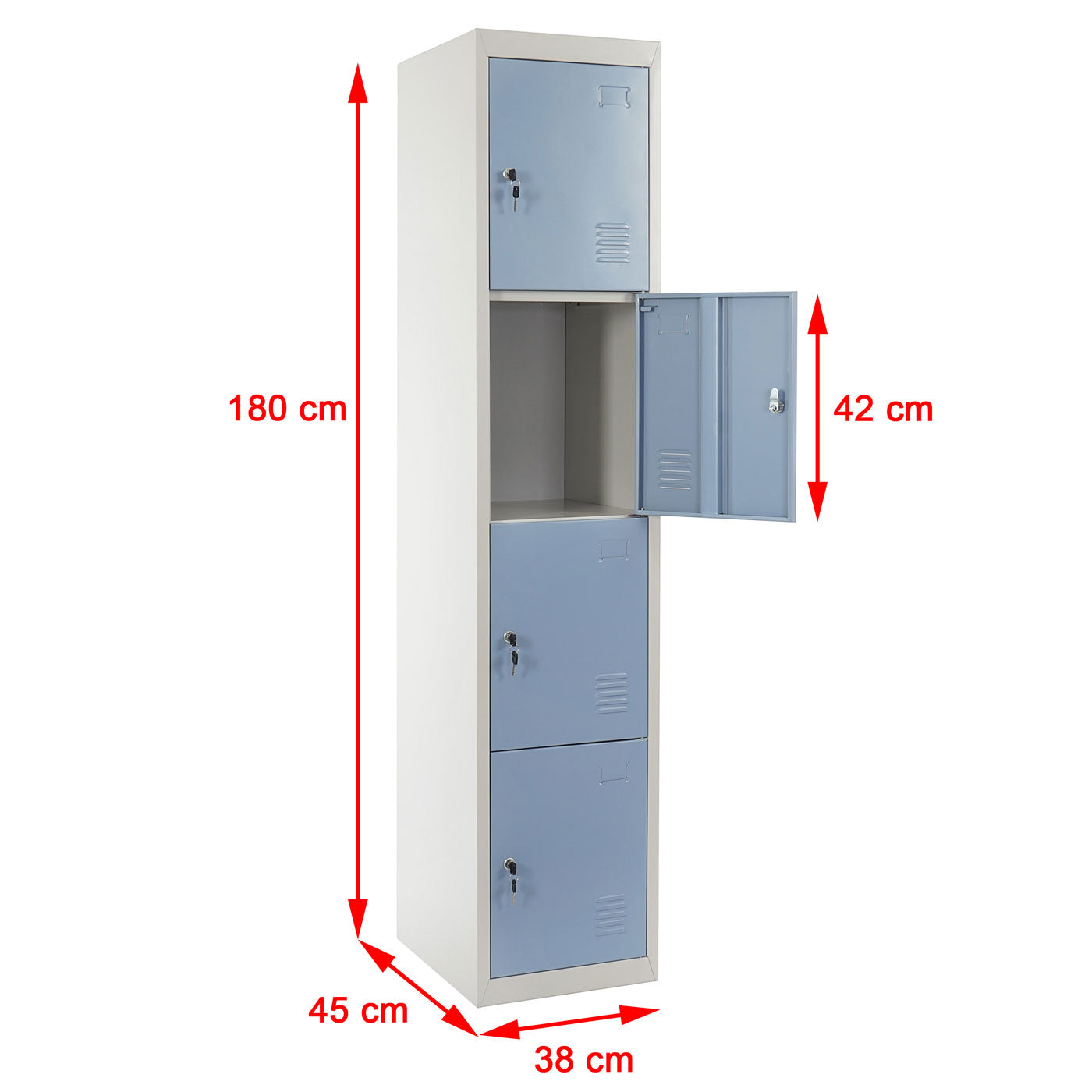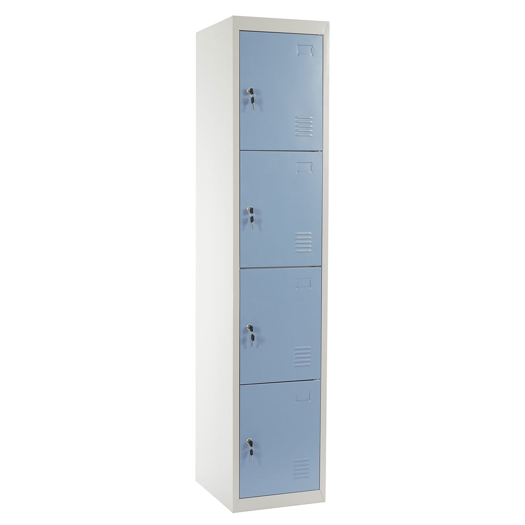 Équipé de 4 casiers, de clés et de clés de rechange pour chaque compartiment de sécurité individuel, de fentes d'aération et d'un porte-étiquette, équipez cette armoire de manière fonctionnelle.
