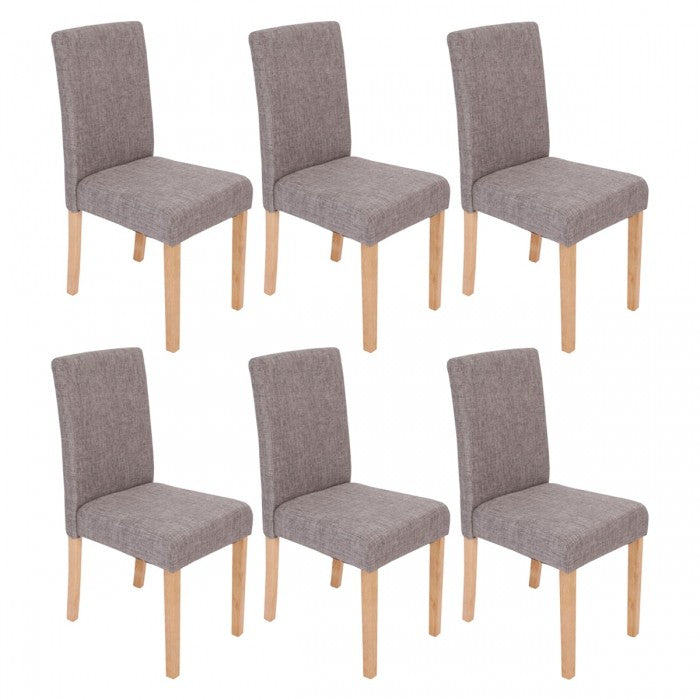 Lot de 6 chaises de salle à manger tissu gris pieds clairs.
