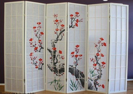 Paravent 6 panneaux japonais en bois blanc 264x175 cm PAR06019