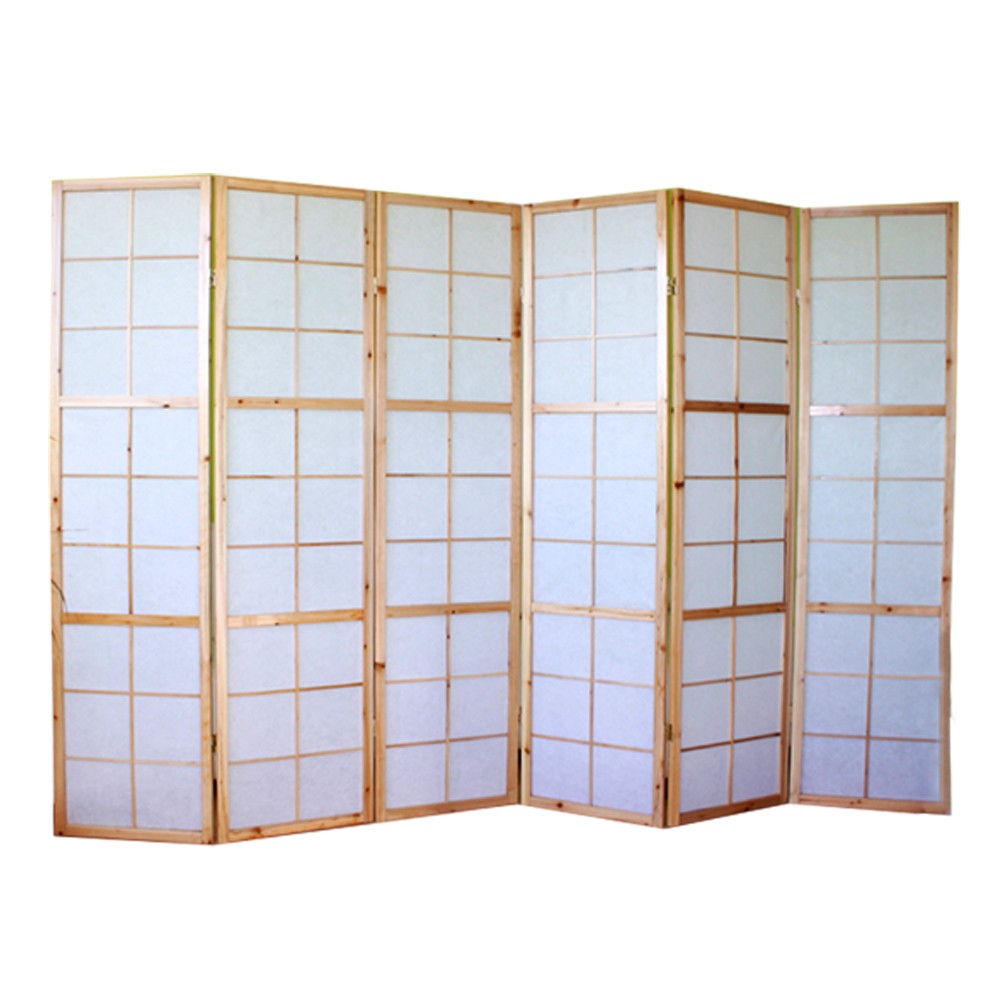 Paravent 6 panneaux pans en bois naturel et papier riz 175x264cm PAR06036