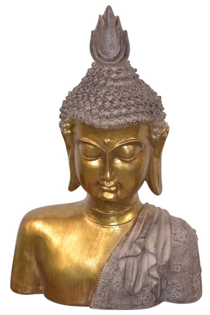 Statue Bouddha sur Pied Détail Fin et Finition Dorée hauteur 36 cm en polyrésine DEC050021