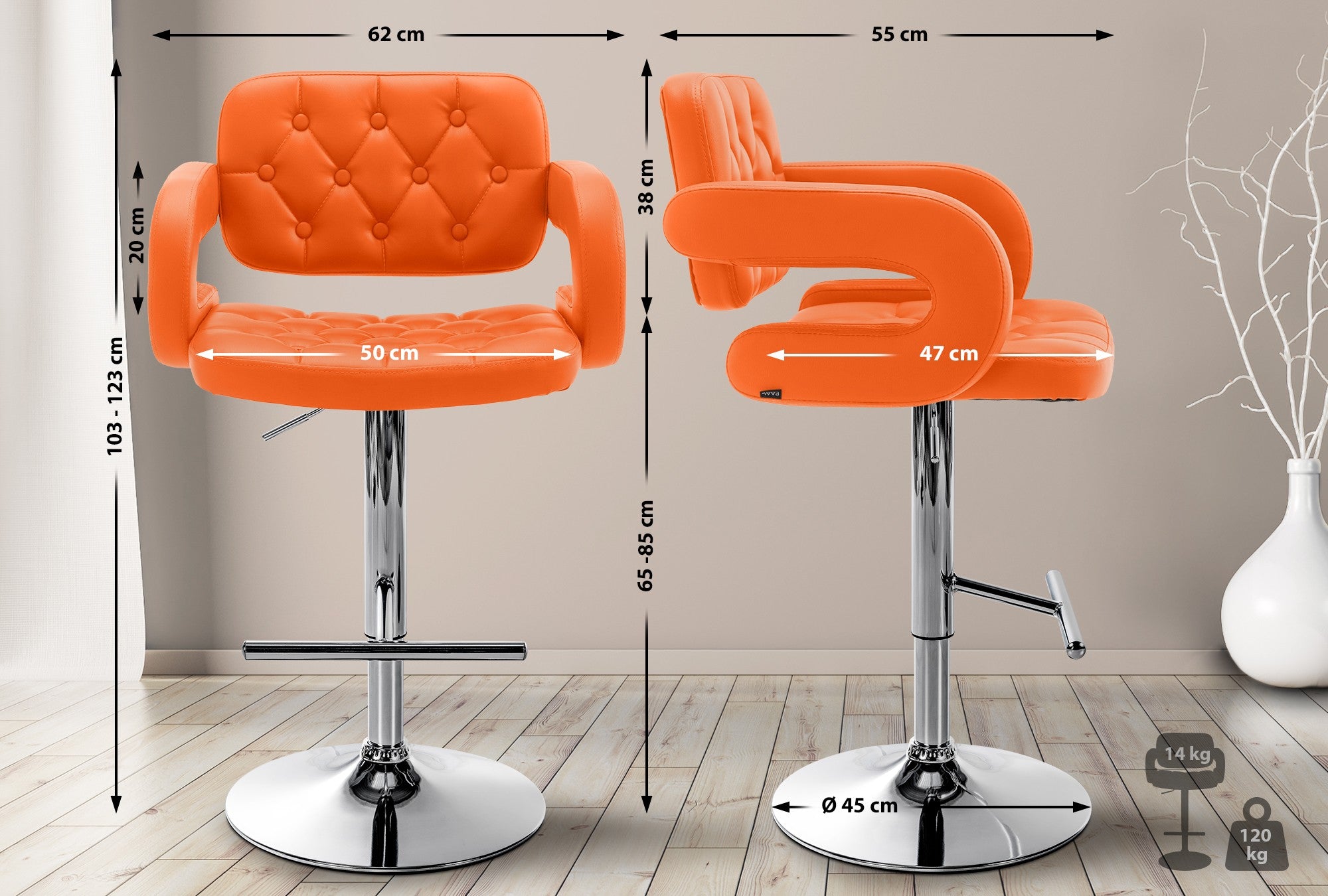 Tabouret de bar x1 design moderne assise capitonnée similicuir orange pied chromé 10_0005957