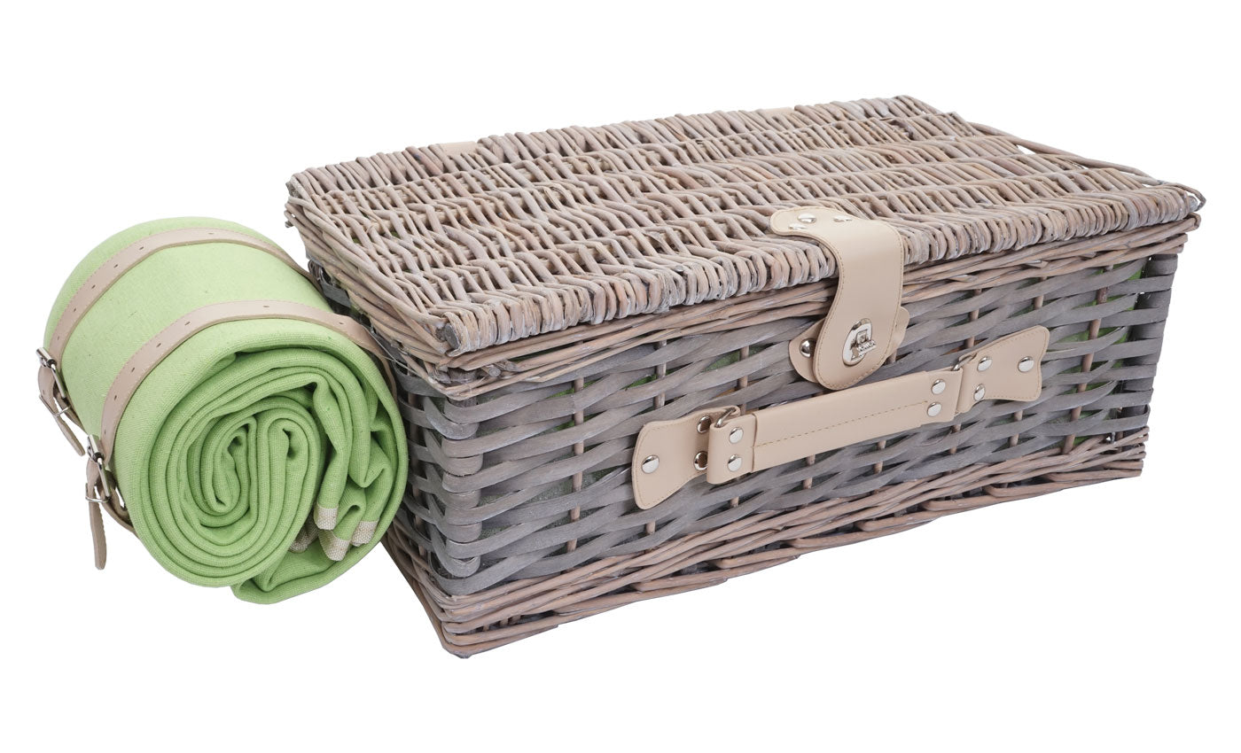 Panier pique-nique pour 4 personnes panier en osier acier inoxydable porcelaine gris-vert