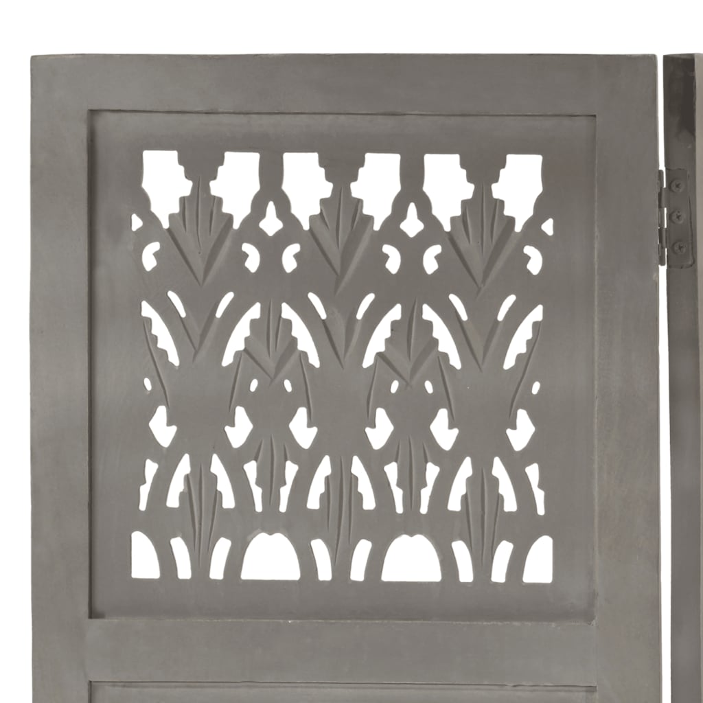 Paravent séparateur de pièce cloison 5 panneaux motifs sculptés à la main 200 x 165 cm bois et MDF manguier gris DEC030970