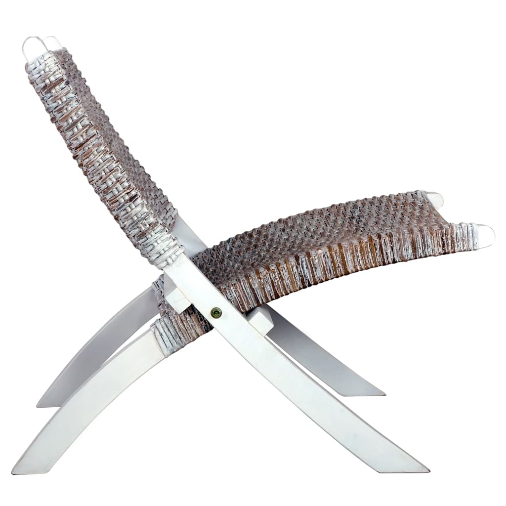 Chaise basse relax siège d'appoint décoratif en rotin kubu naturel et acajou massif blanc FAL02003