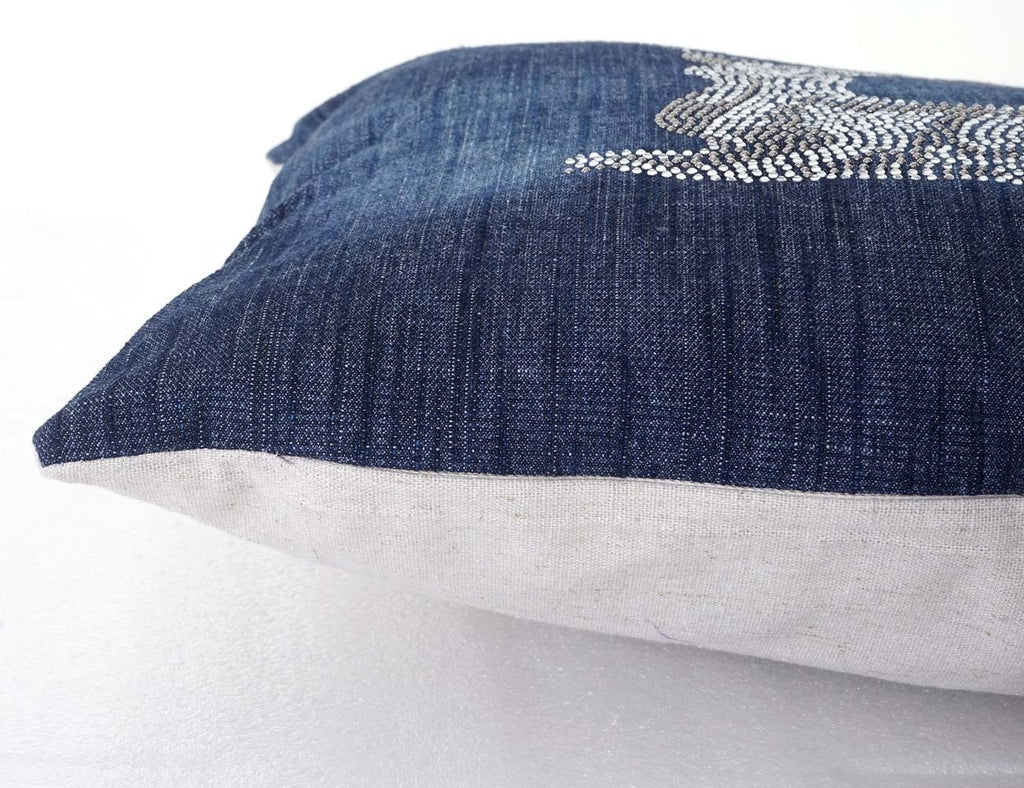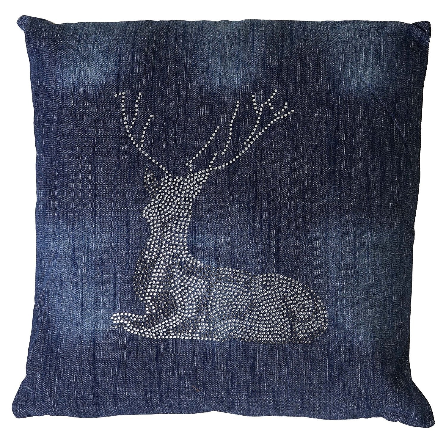 Coussin bleu avec motif cerf effet brillant 45x45 cm déhoussable DEC04074