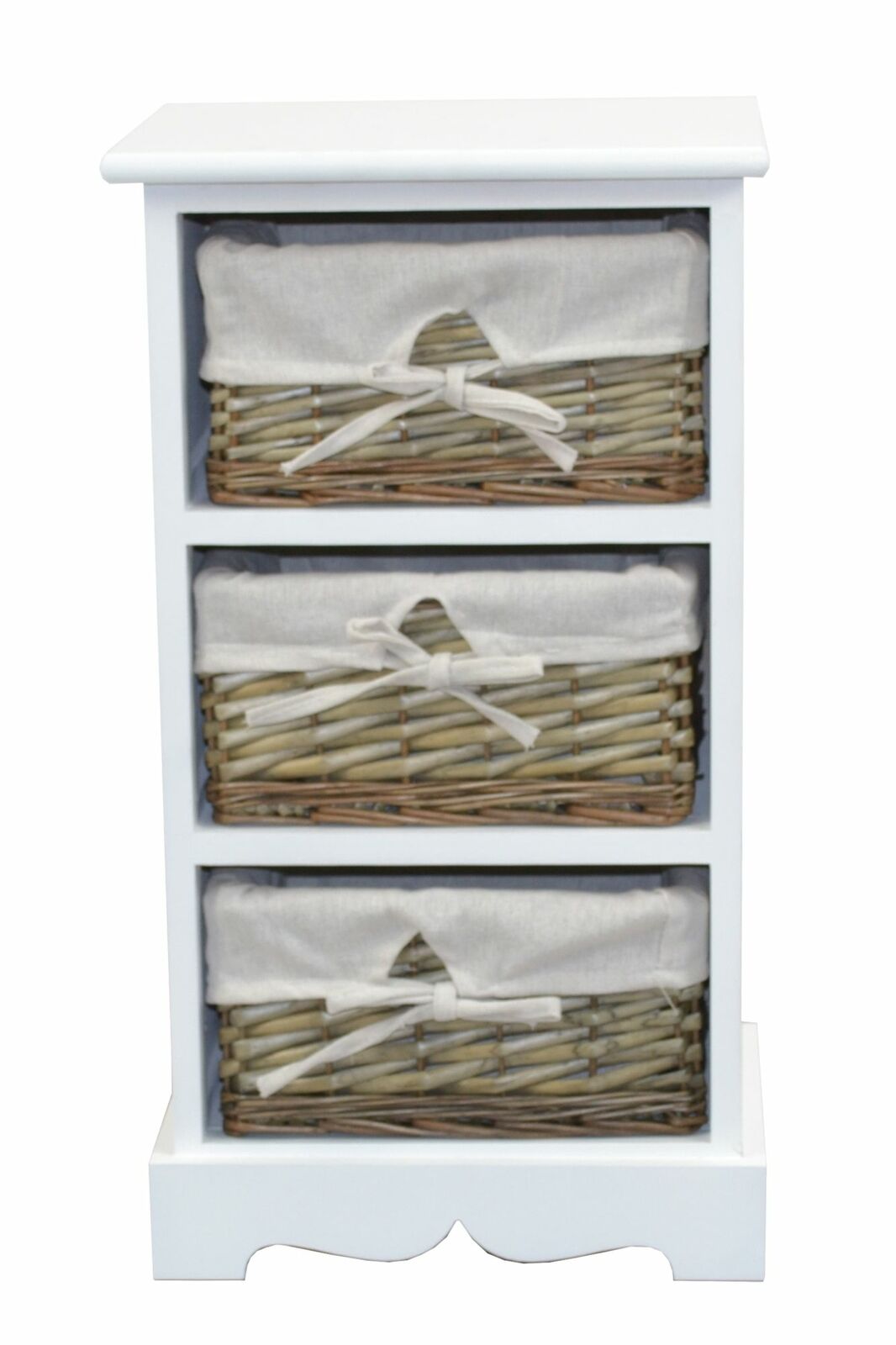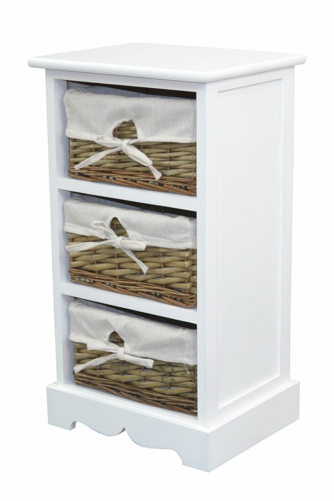 Étagère commode design vintage en MDF blanc avec 3 paniers en saule blanc / naturel MED05169