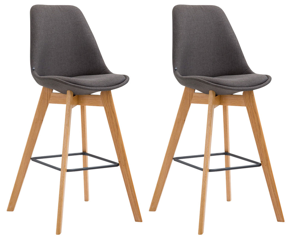 Lot de 2 tabourets de bar style scandinave avec dossier en tissu gris foncé et structure en bois naturel 10_0005577