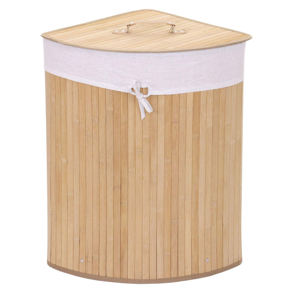 Panier / corbeille à linge d'angle en bambou nature 50l avec poignées 61x48x35cm DEC04117
