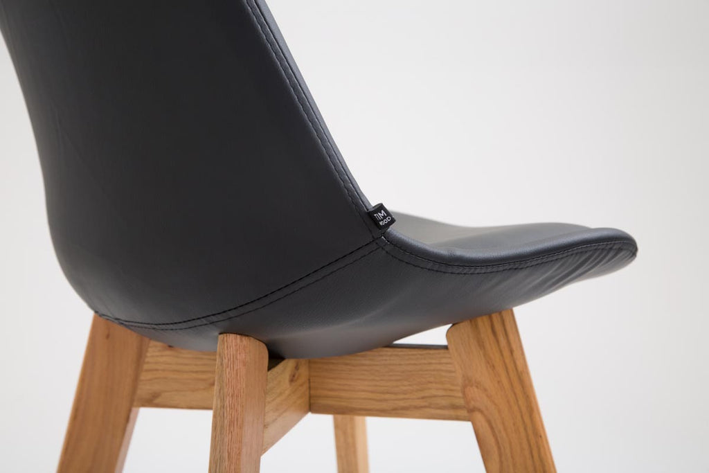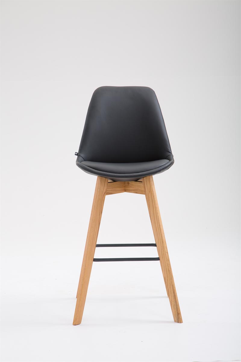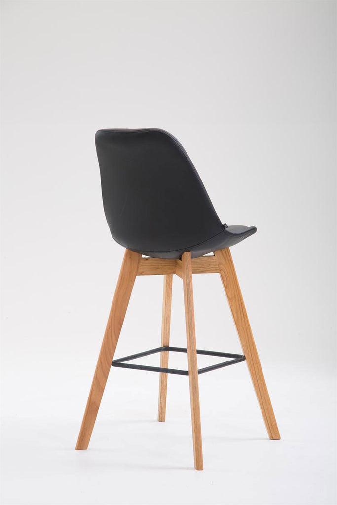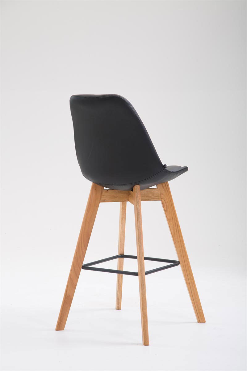 Tabouret de bar x1 style scandinave avec dossier en similicuir noir et structure en bois naturel 10_0006327