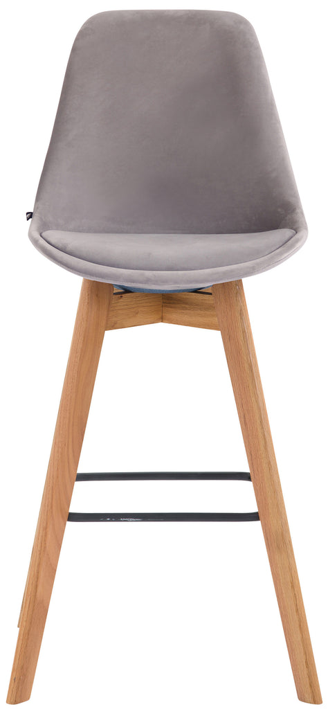 Tabouret de bar x1 style scandinave avec assise en velours gris et structure en bois naturel 10_0005723
